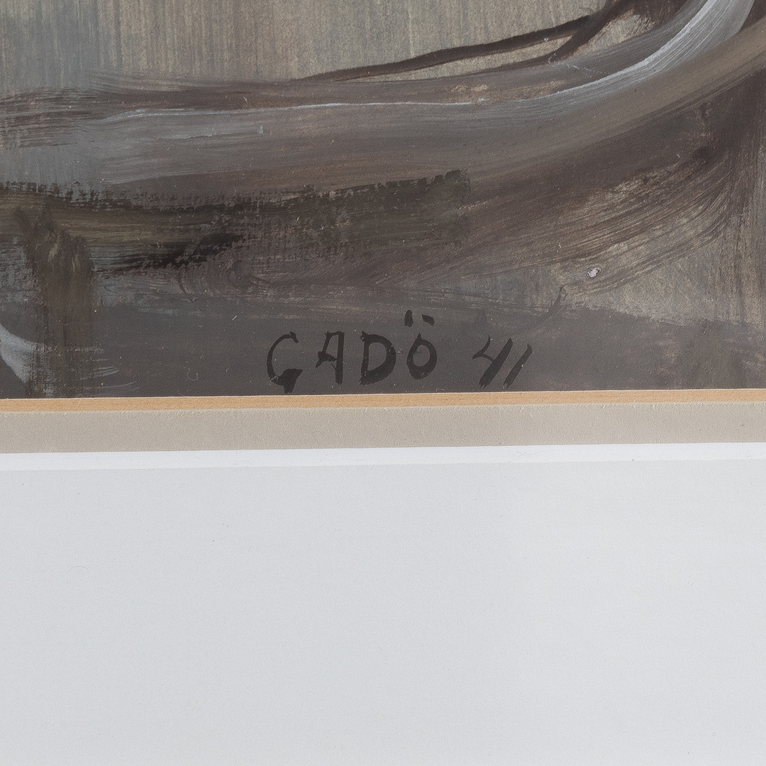 4426852. BERTIL GADÖ. Interieur mit Figuren, Mischtechnik.