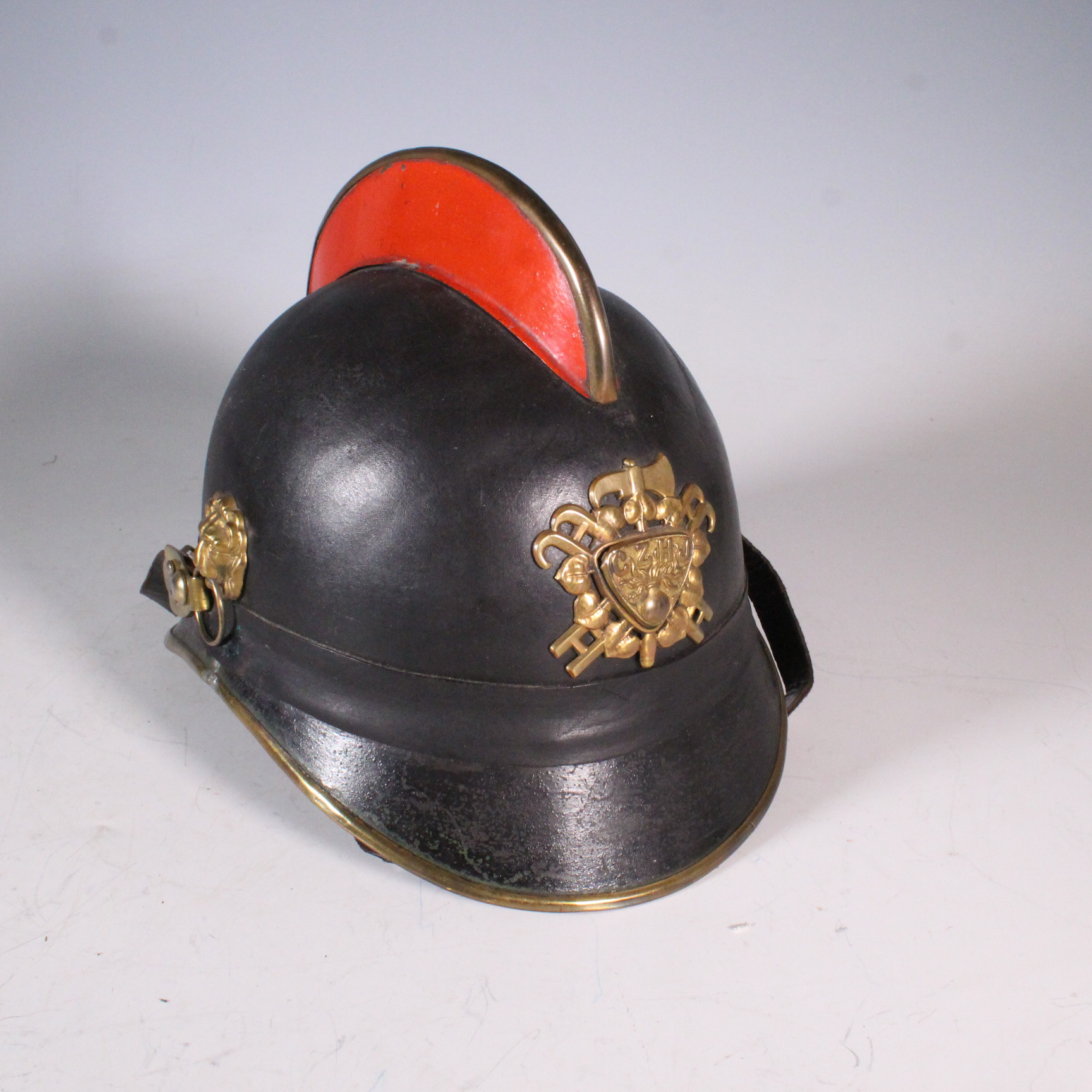 4428905. Tschechoslowakei, Feuerwehrhelm, Leder, Messing.