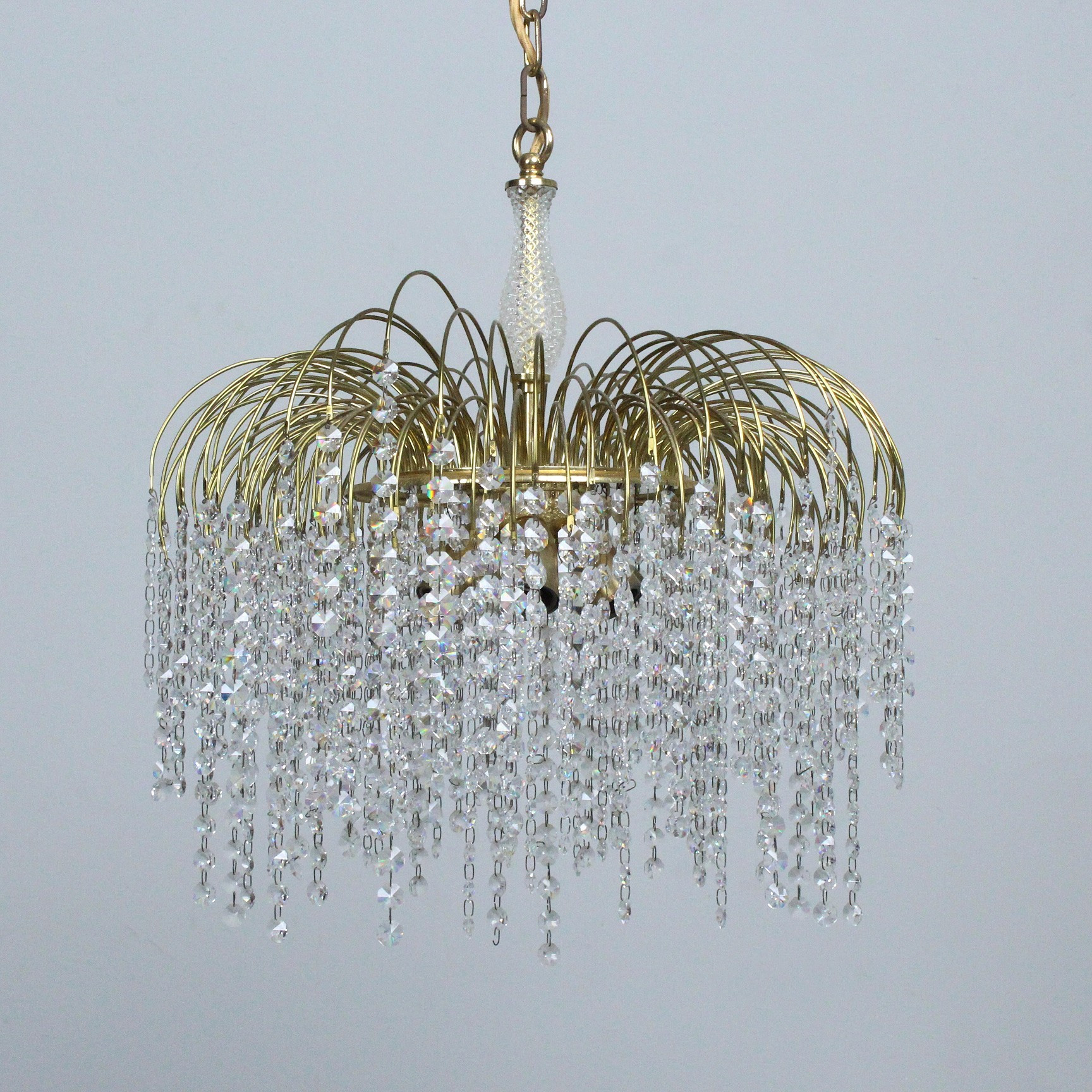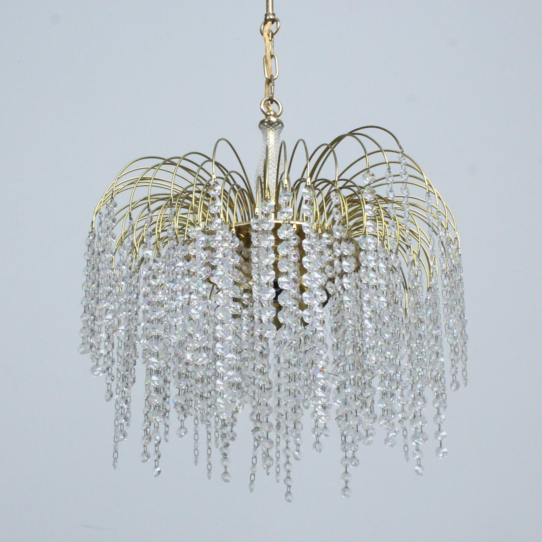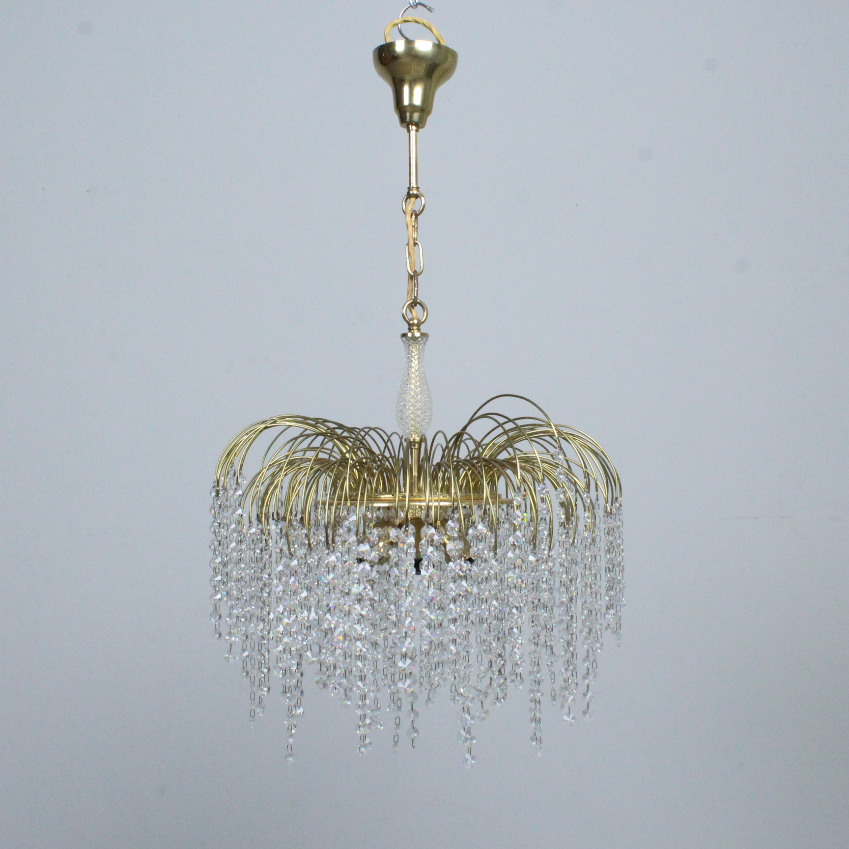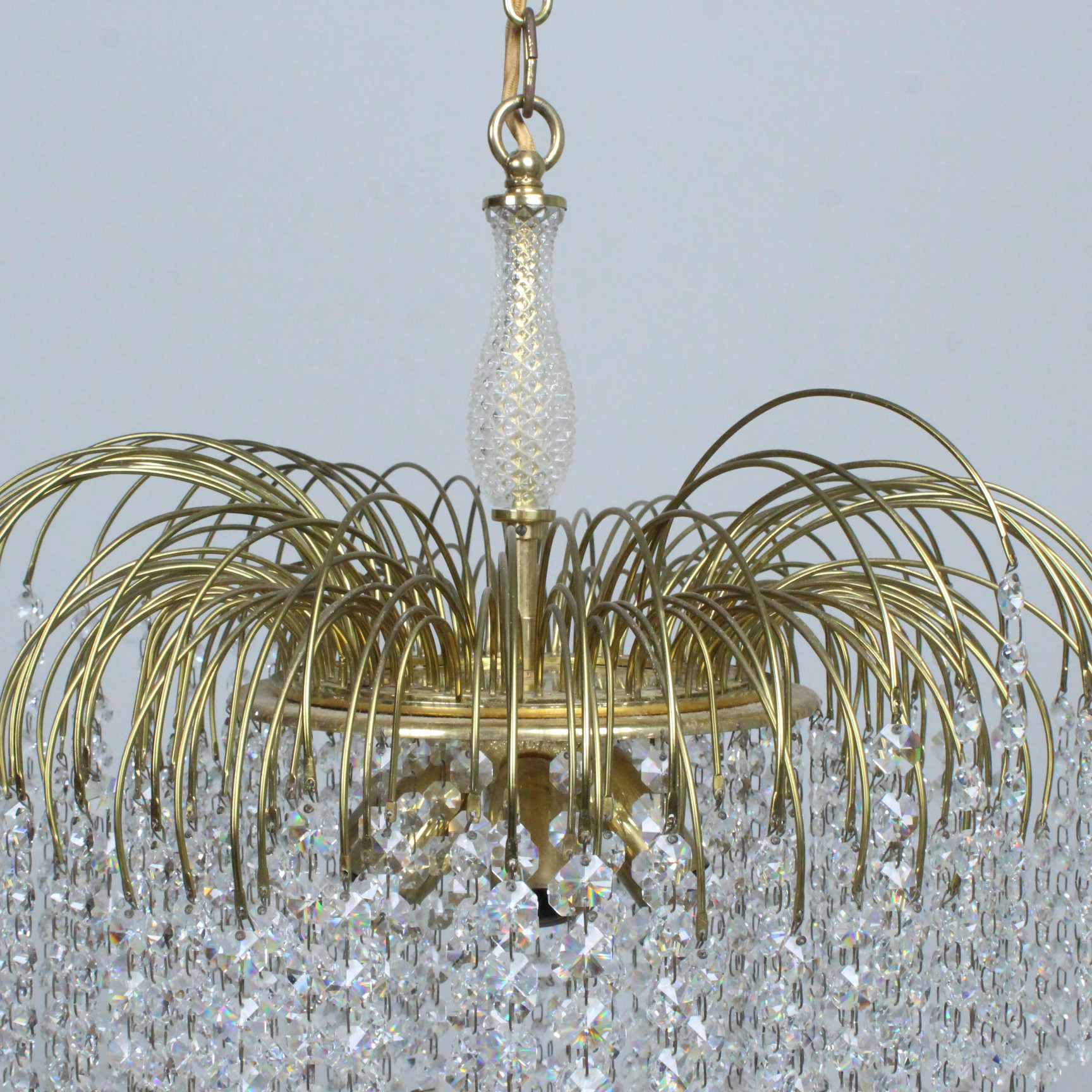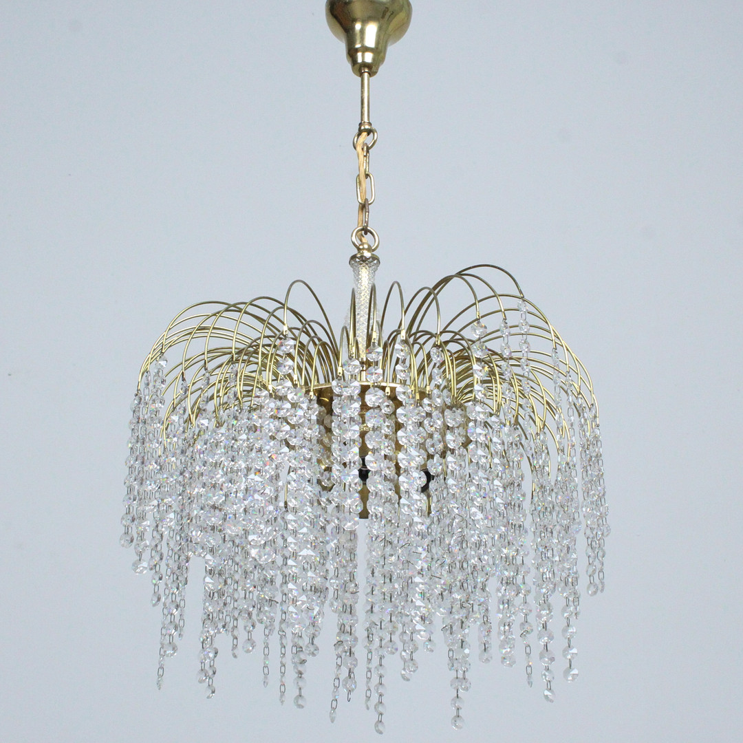 4429724. Deckenlampe, '' Waterfall '' Messing, Glas, 1970er.