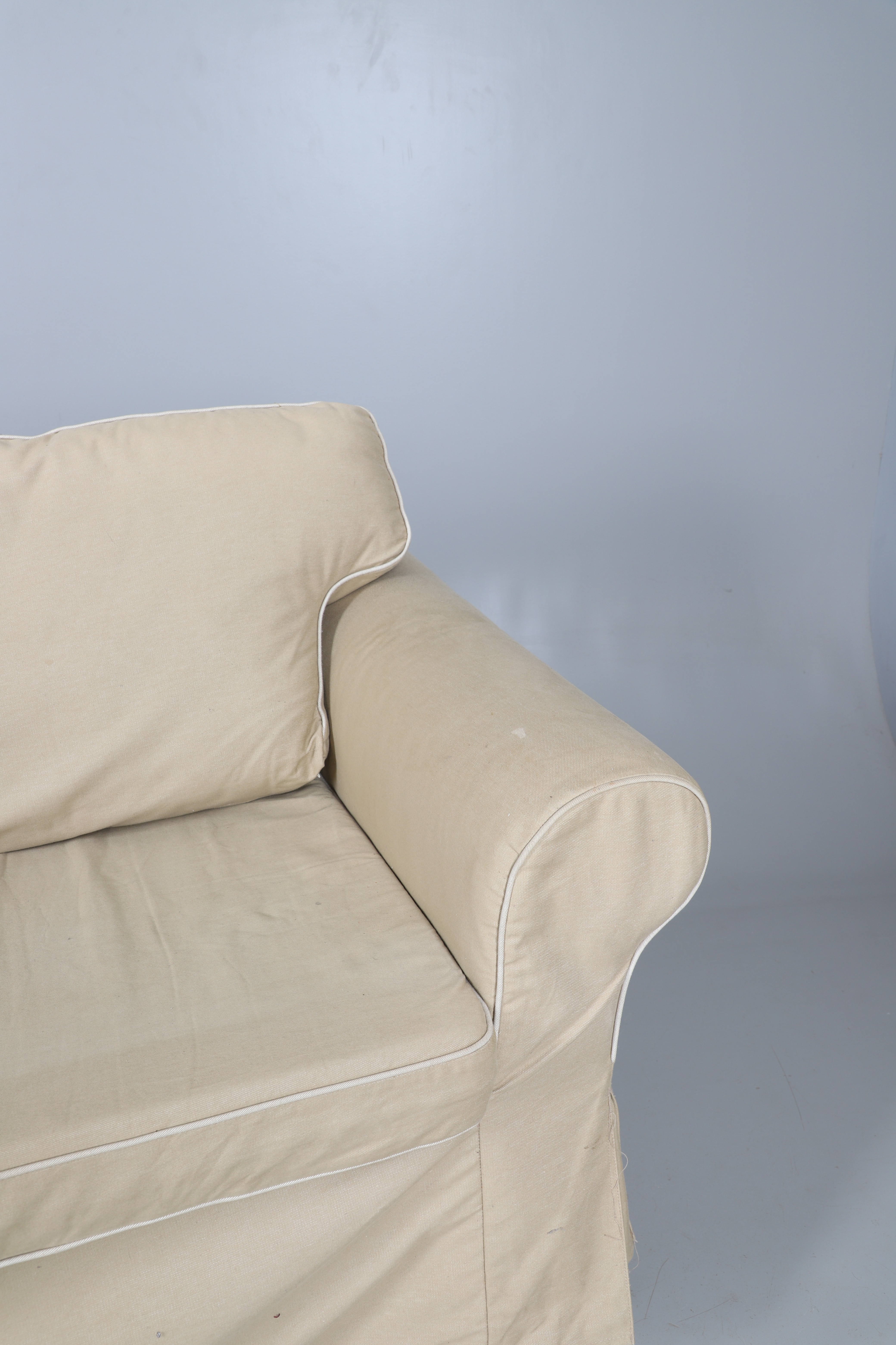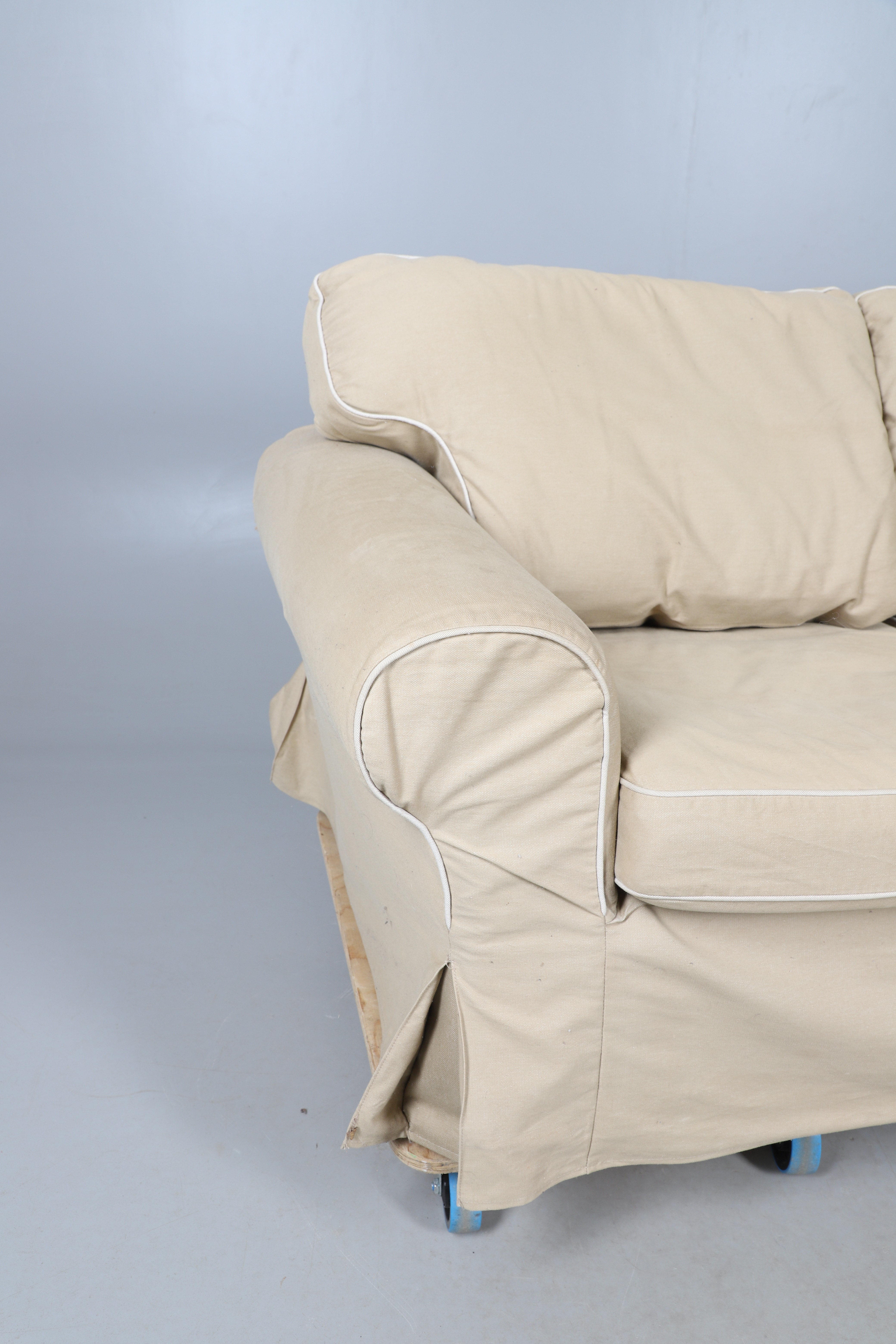 4435047. EIN MODERNES CREMEFARBENES ZWEISITZER-SOFA.