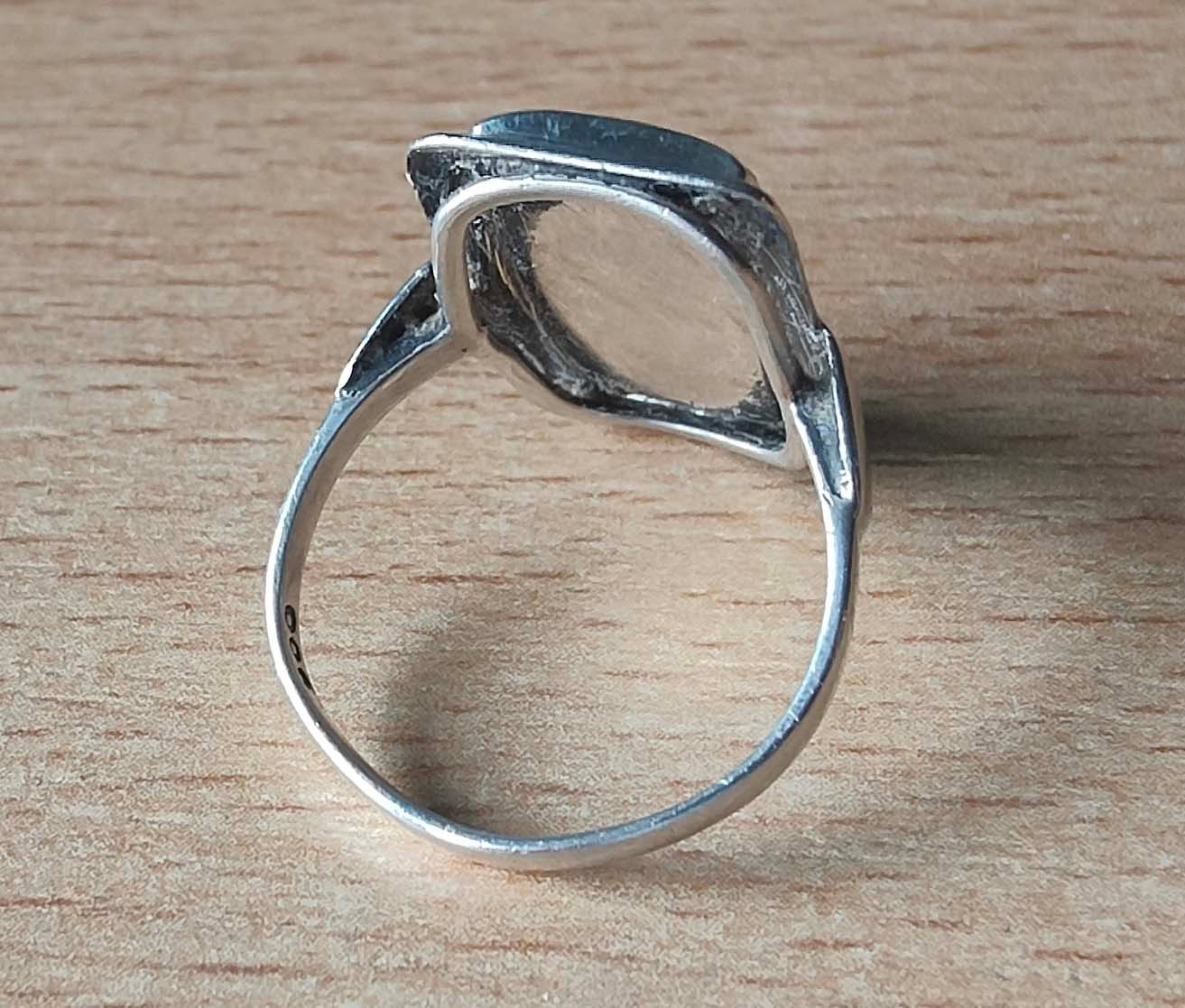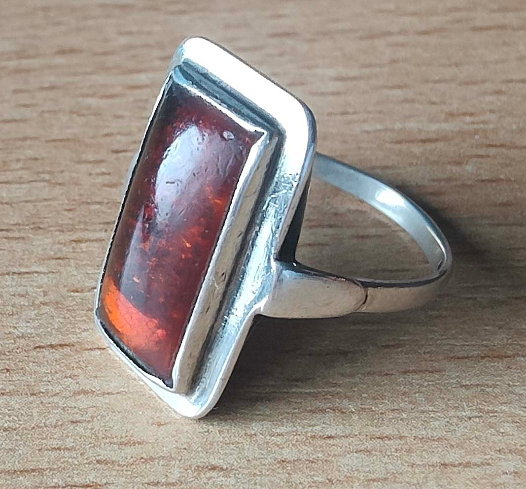 4436151. BERNSTEIN RING, Art Deko 900 Silber.