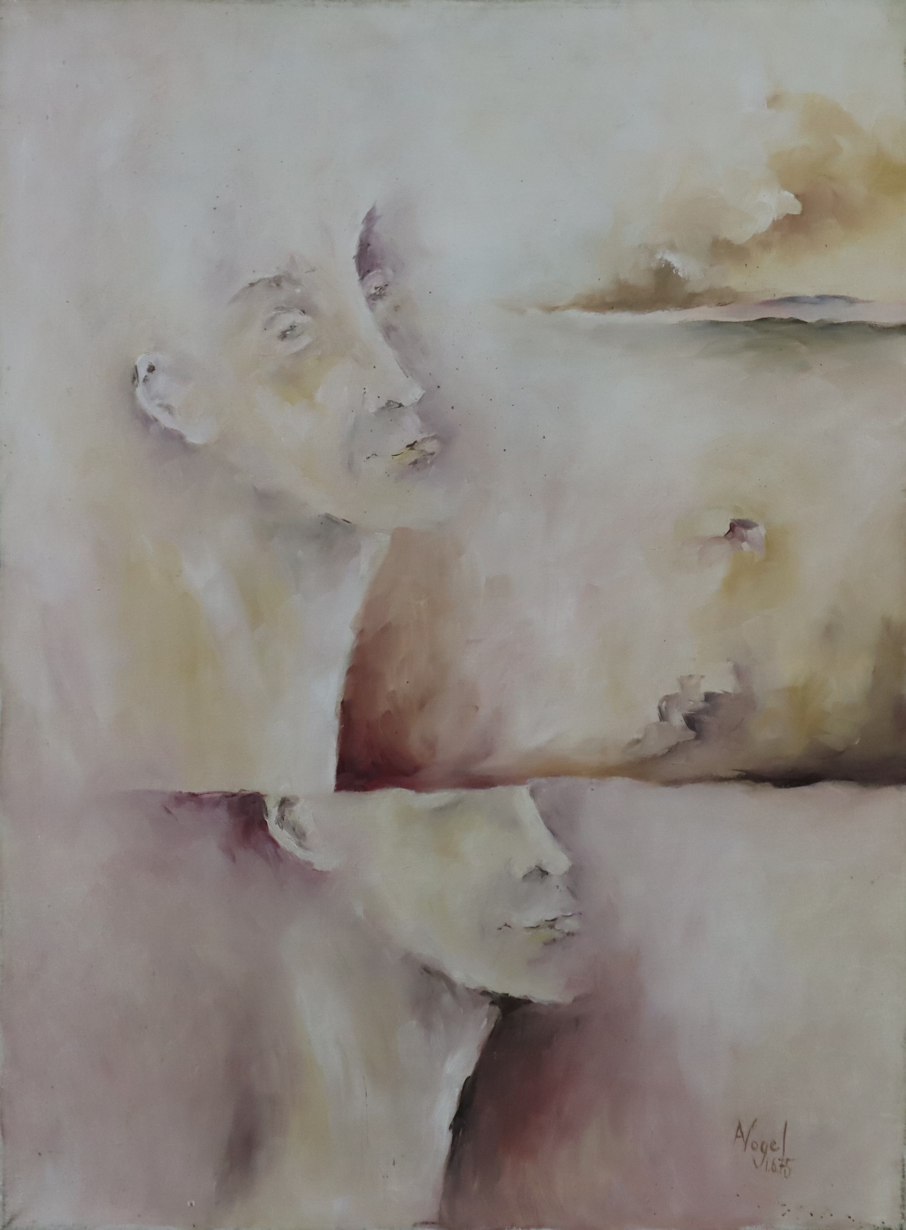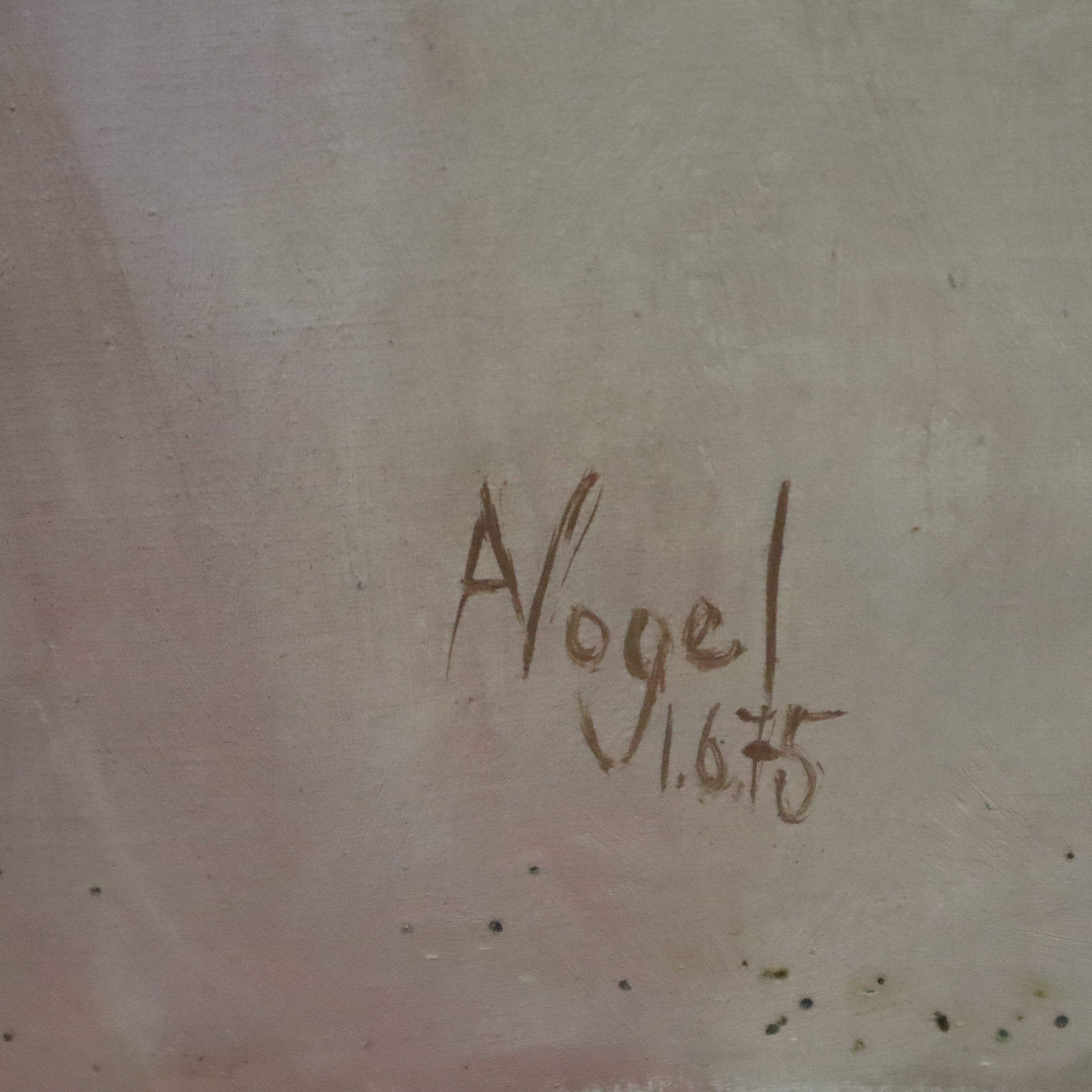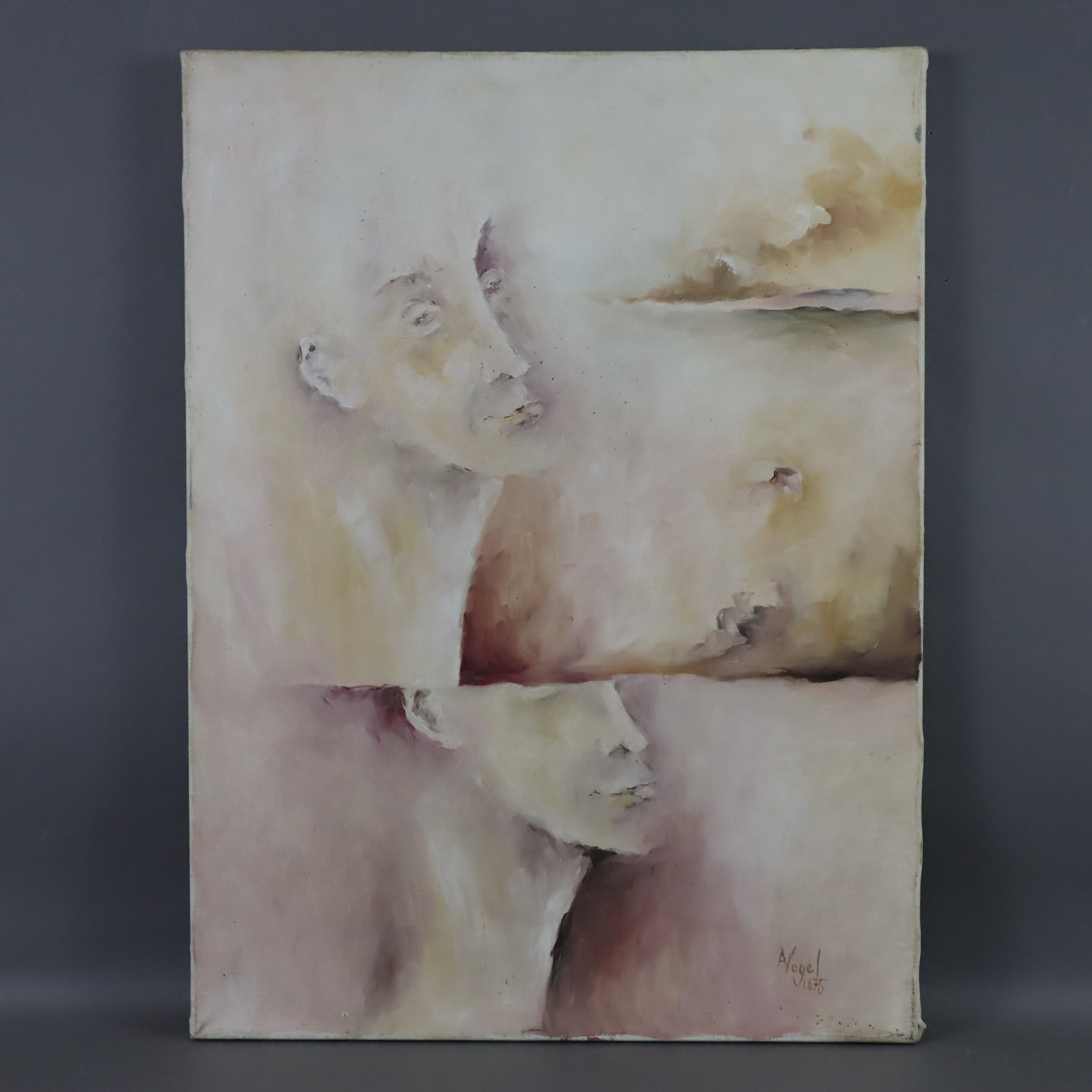 4436887. VOGEL, A. - Abstraktion mit Gesichtern, 1975, Öl auf Leinwand.