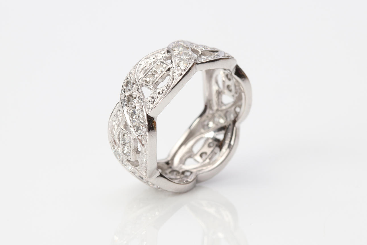 Alliance Ring aus 18 Karat Weißgold mit Diamanten ca. 0,40 Karat, Größe. ca. 15 mm, Gesamtgewicht 5,9 g.
