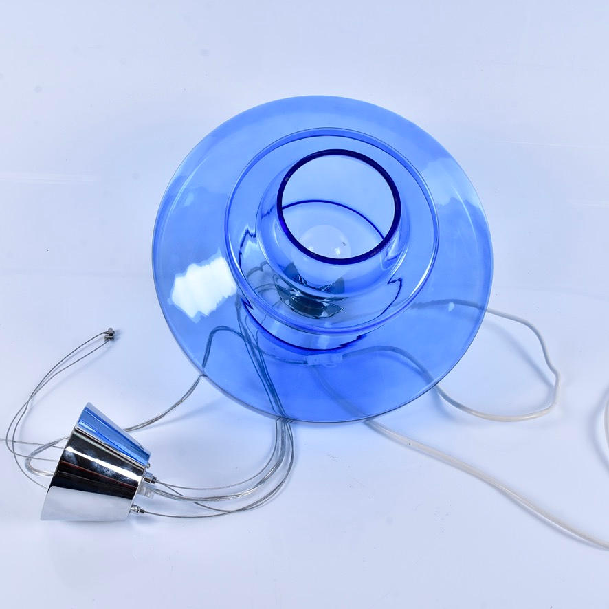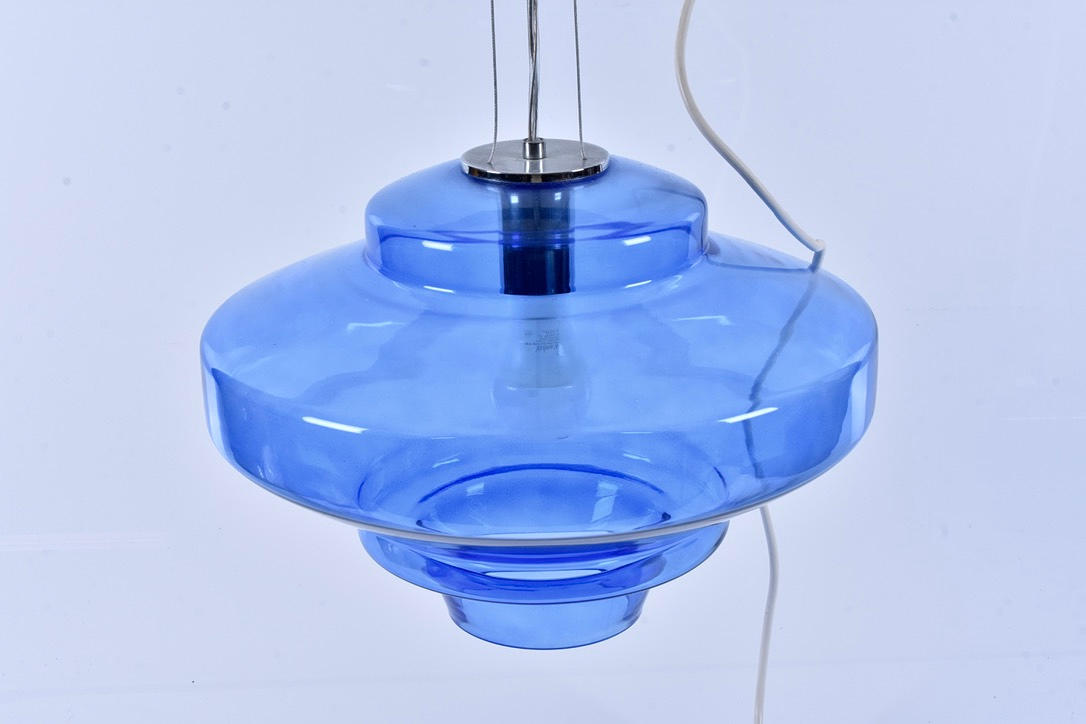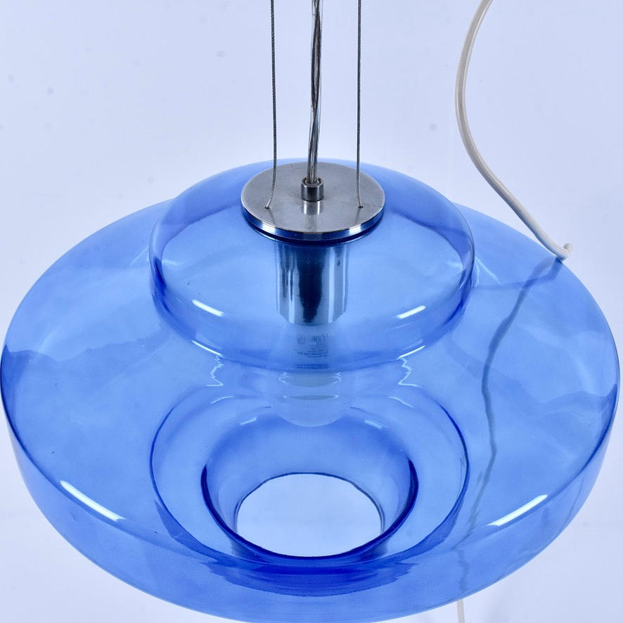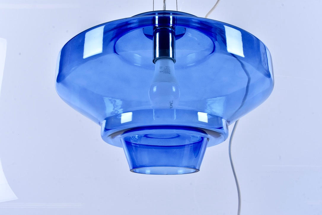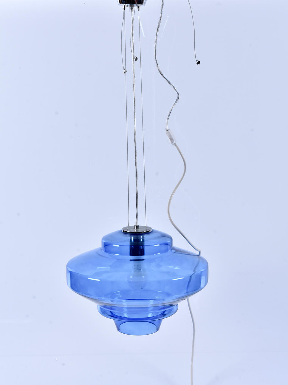 4441808. DECKENLEUCHTE, hellblaue Glasmasse mit Metallfassung.