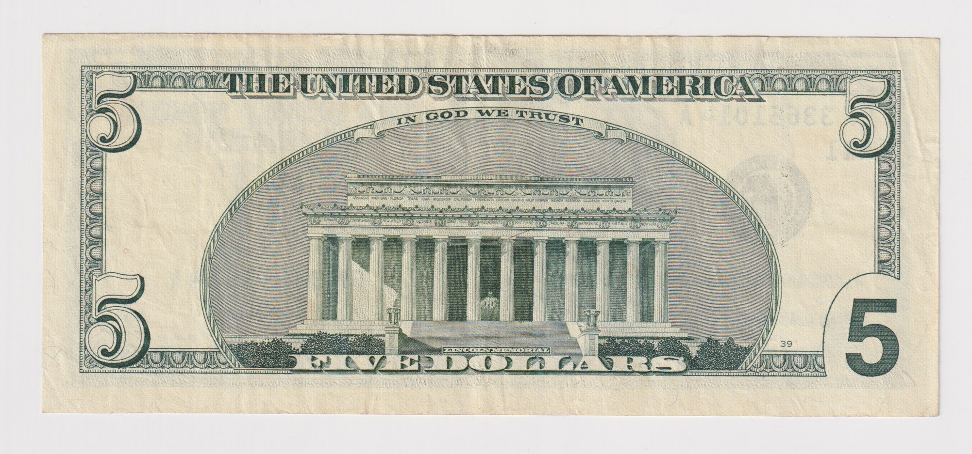 4442744. FÜNF-DOLLAR-FEHLER-BANKNOTE, USA.