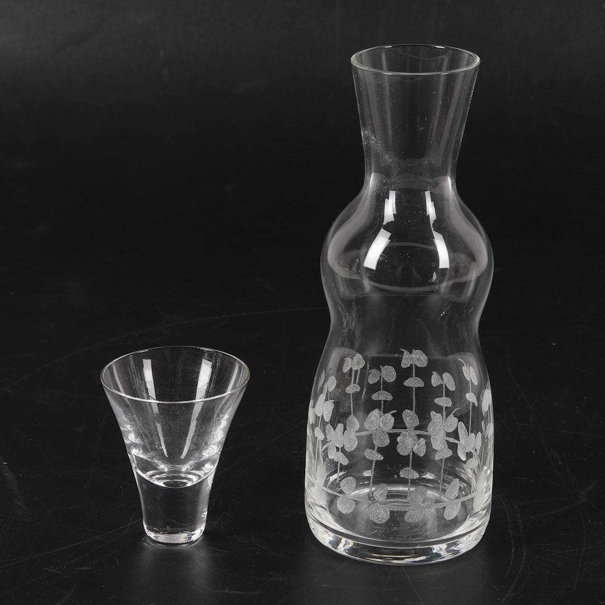 4442991. SNAPSJUNGFRU mit Schnappglas, 6 Stück, Glas, geätztes Dekor.