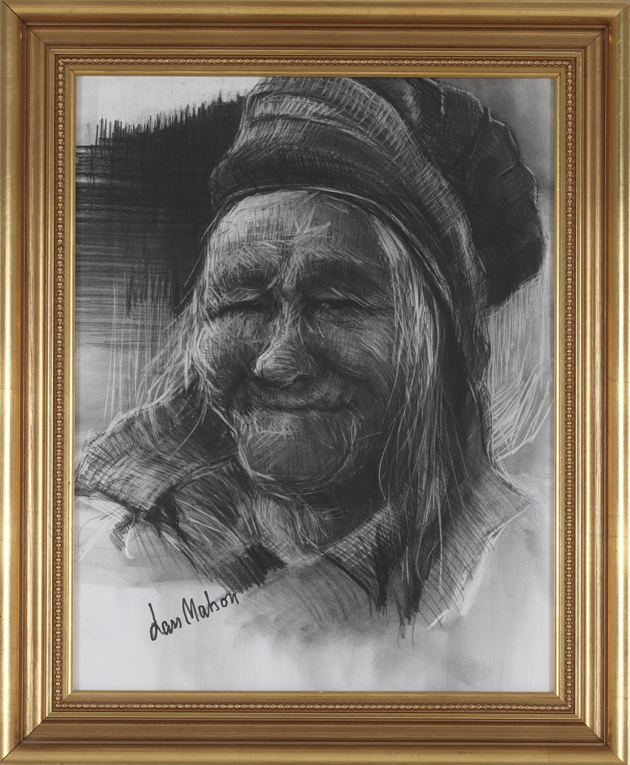 4445809. LARS MATSON. Portrait, Kohlezeichnung, signiert.