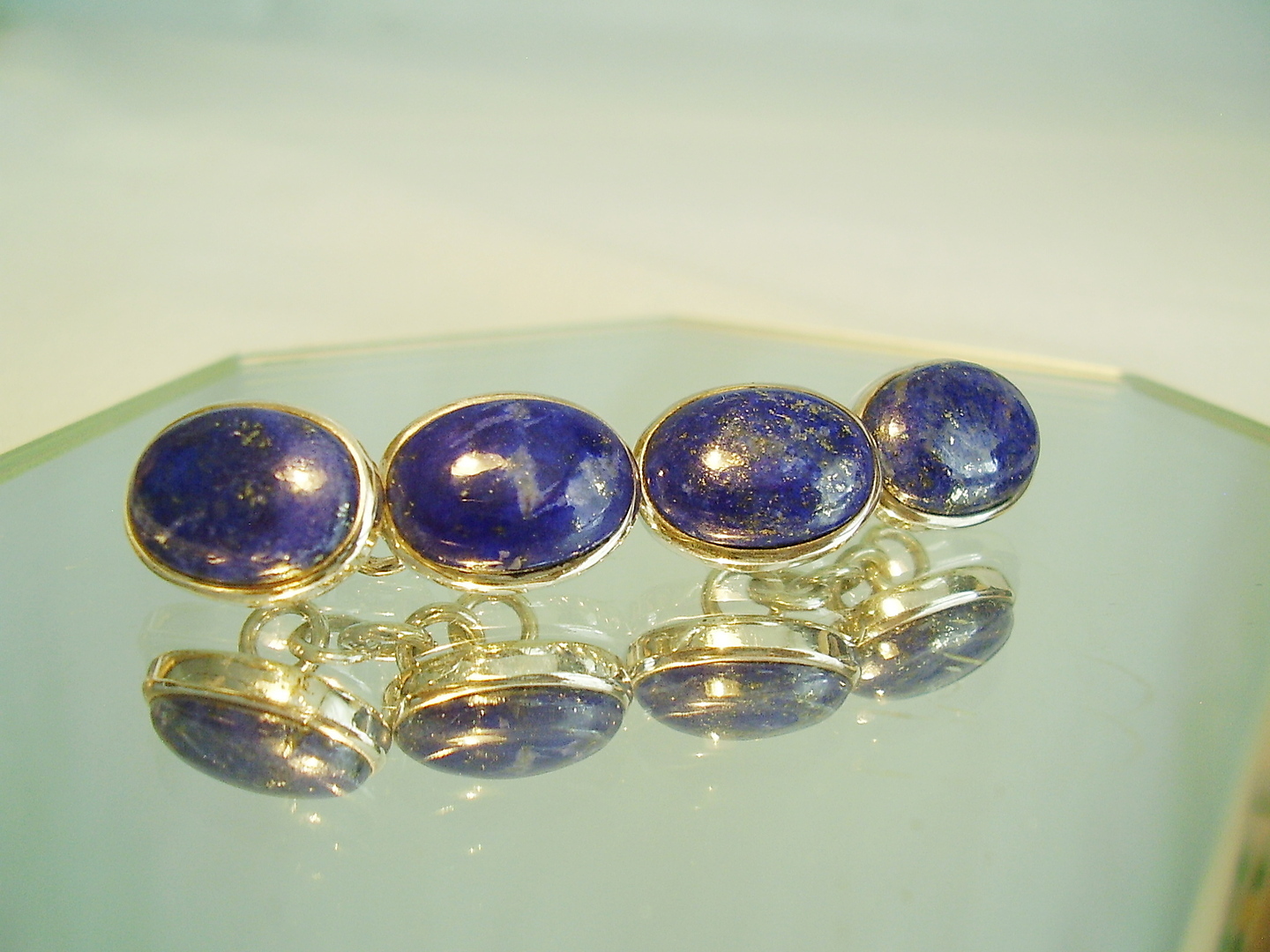 444712. DOPPEL-MANSCHETTENKNÖPFE MIT LAPISLAZULI Handarbeit in Silber 925.