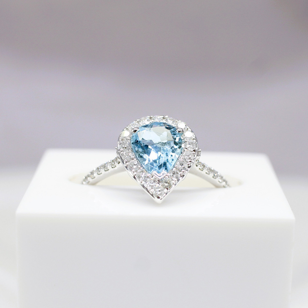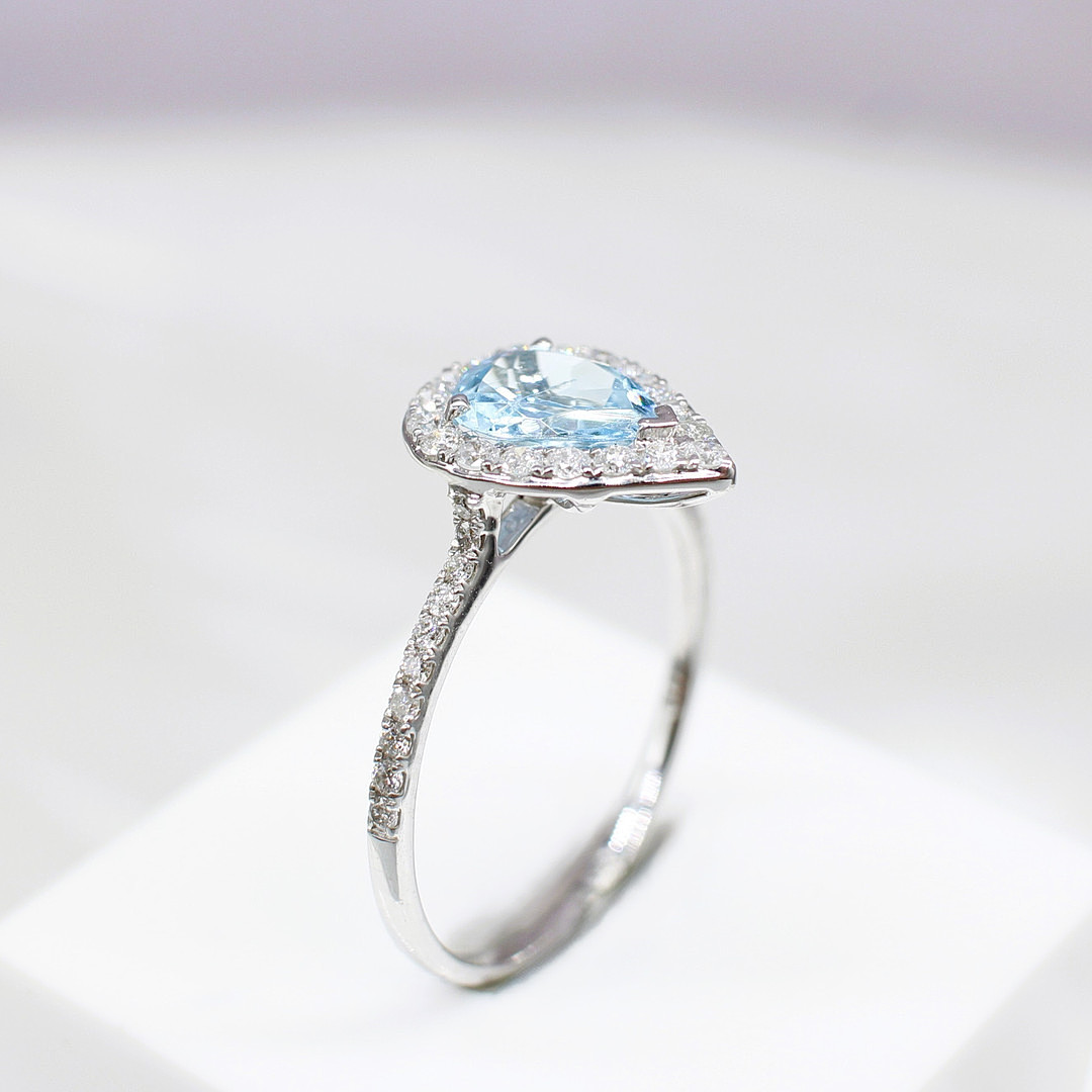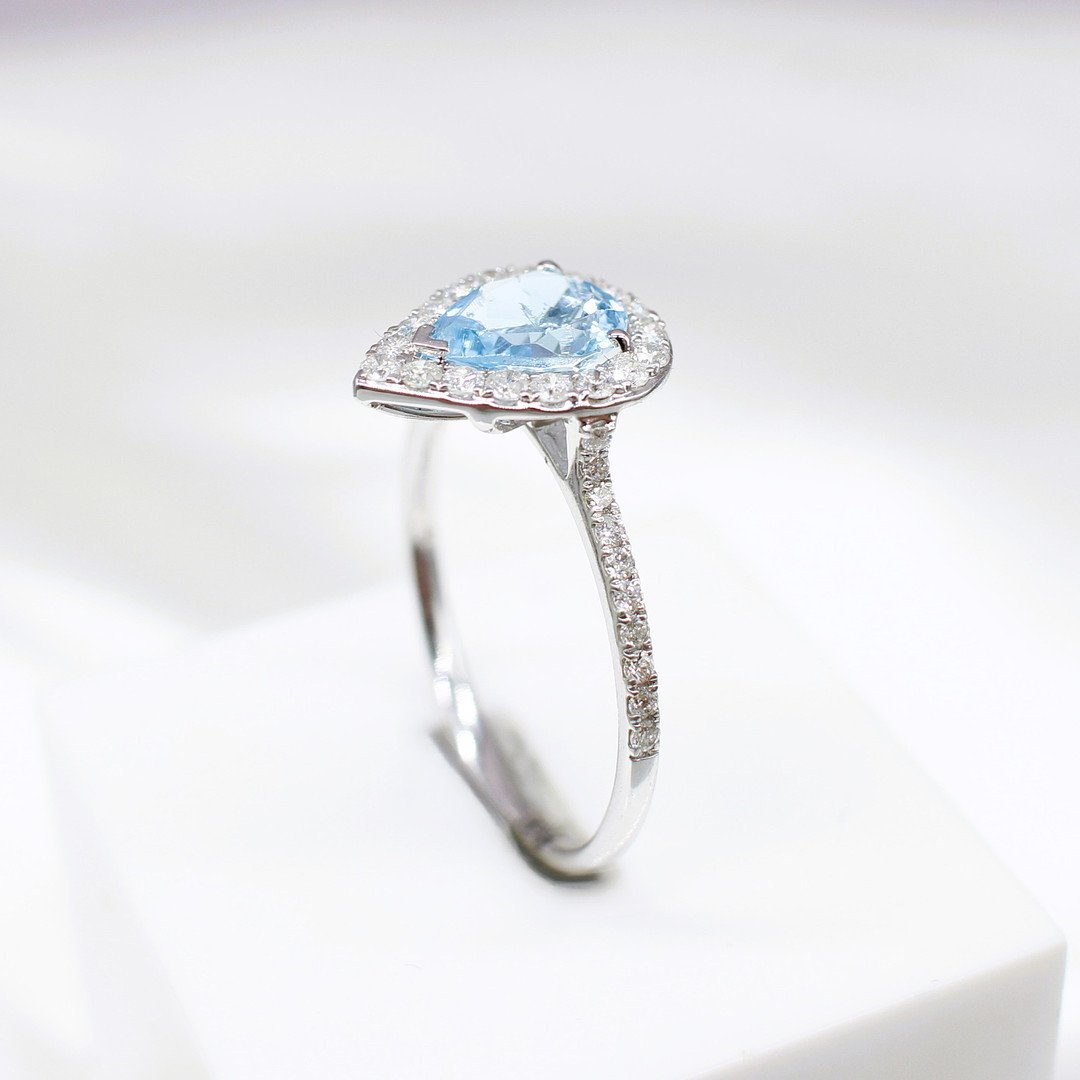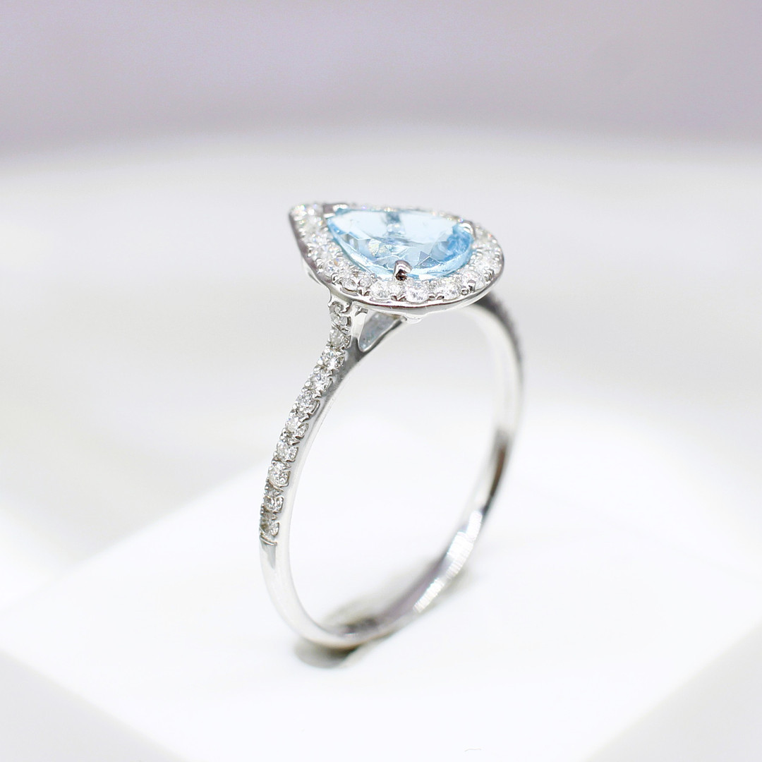 4447576. TROPFENRING MIT AQUAMARIN UND DIAMANT.