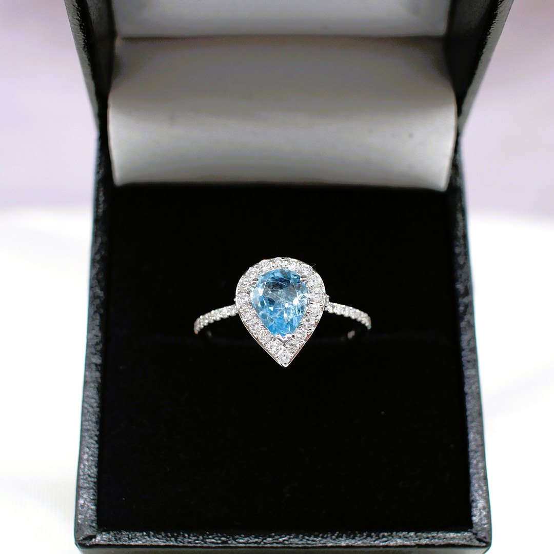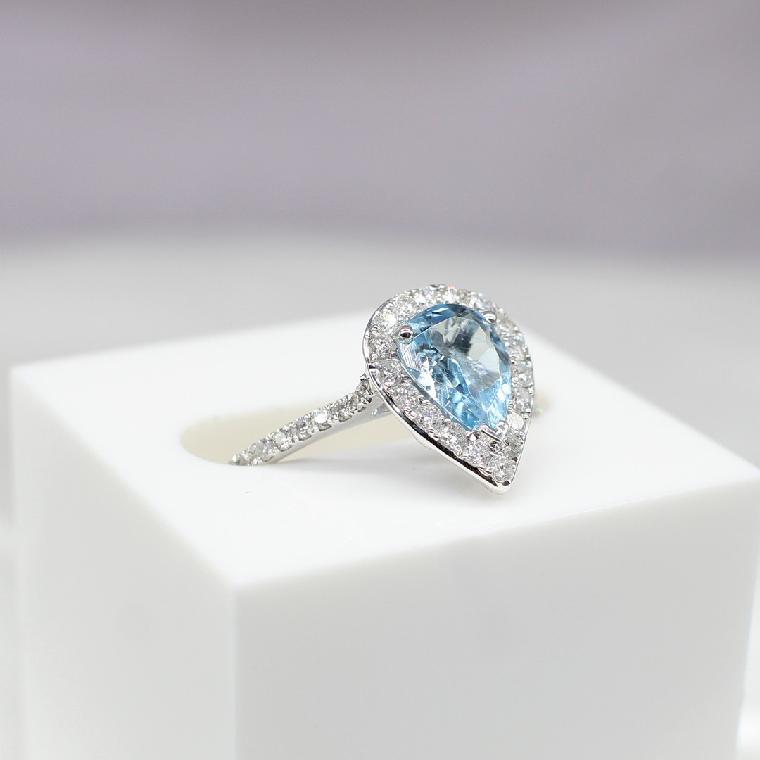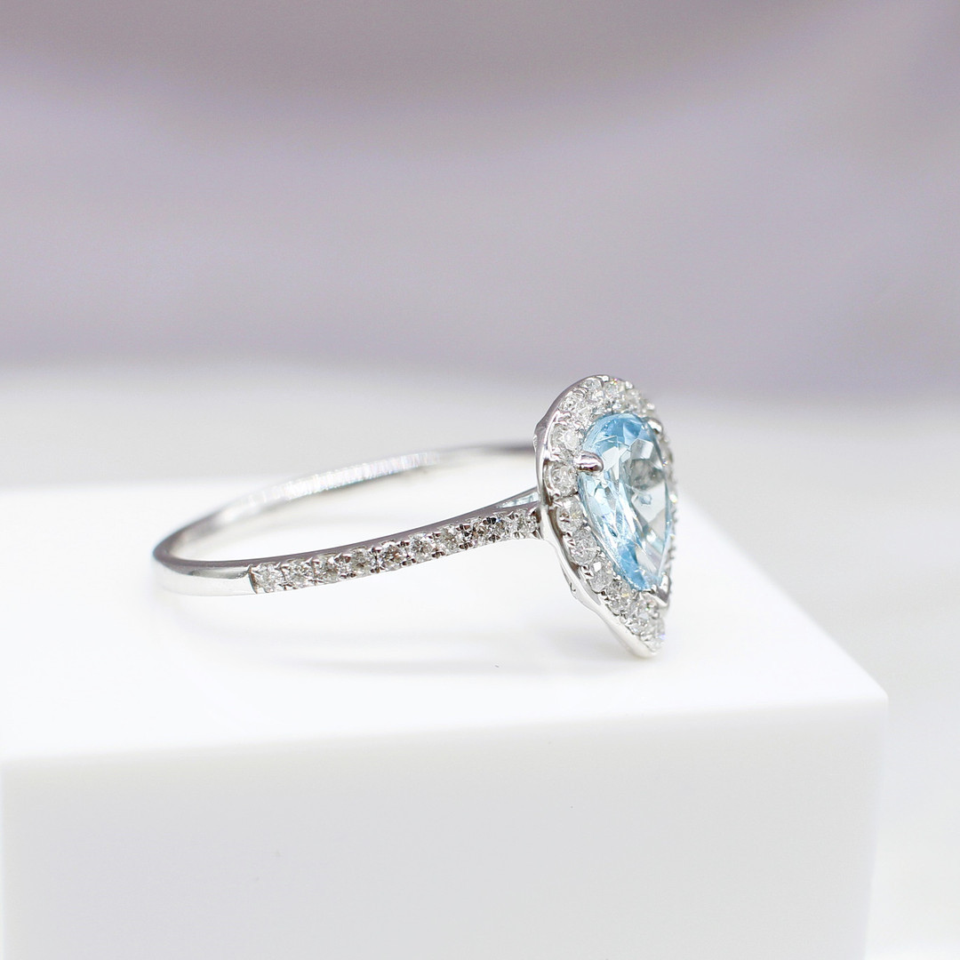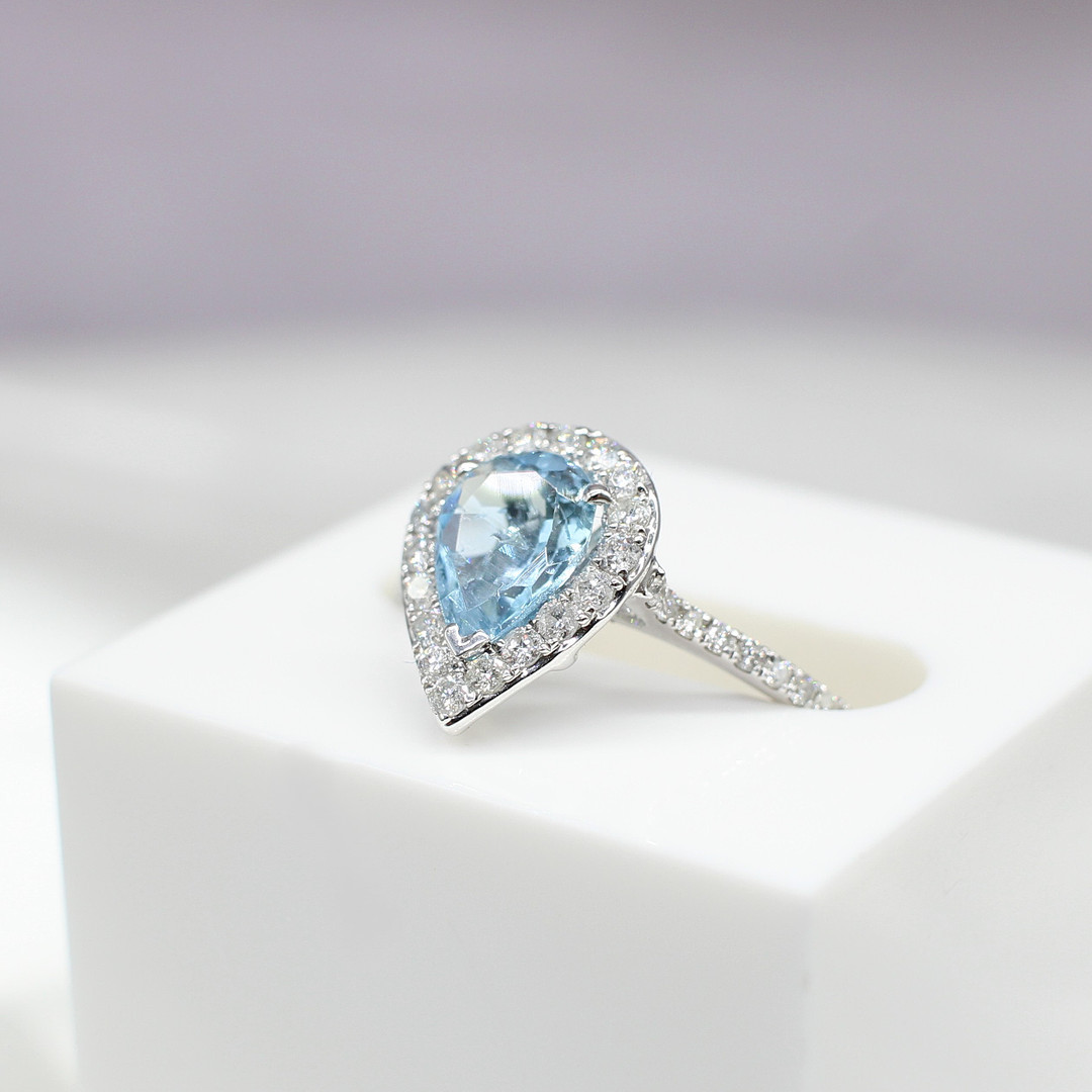 4447576. TROPFENRING MIT AQUAMARIN UND DIAMANT.