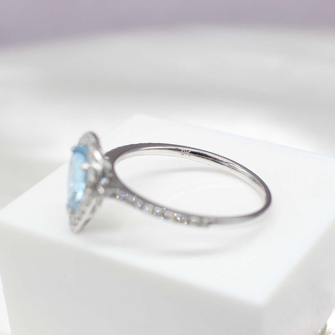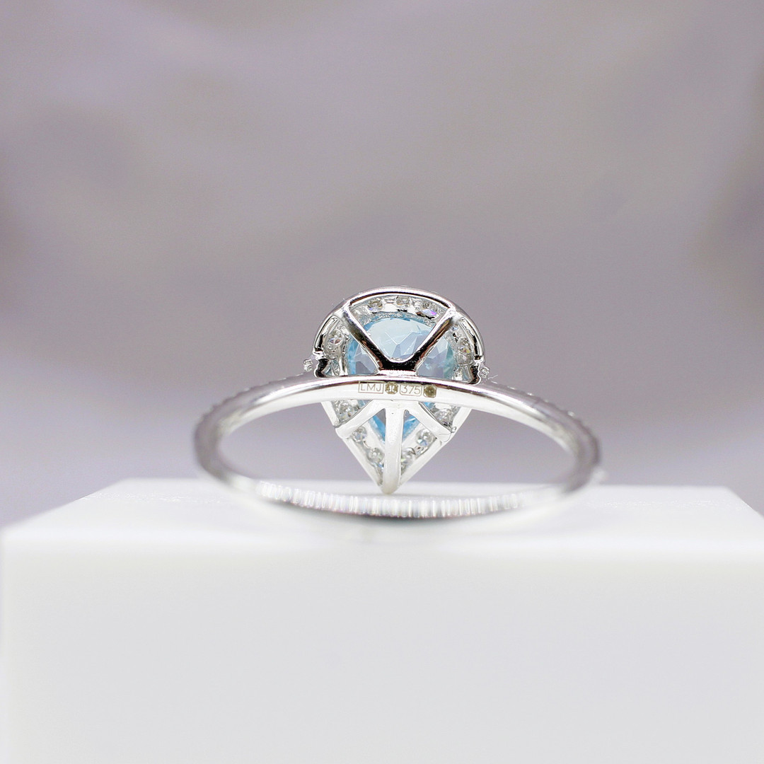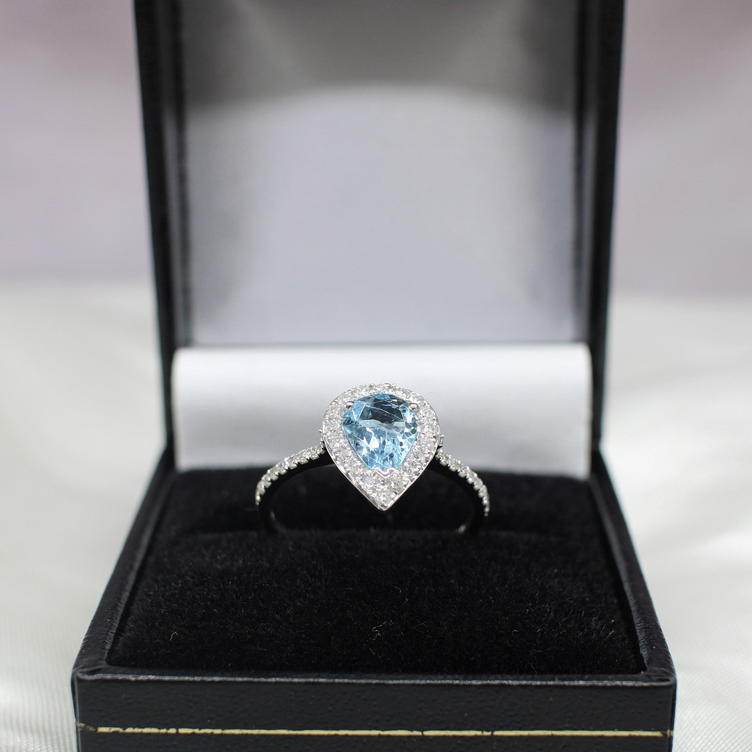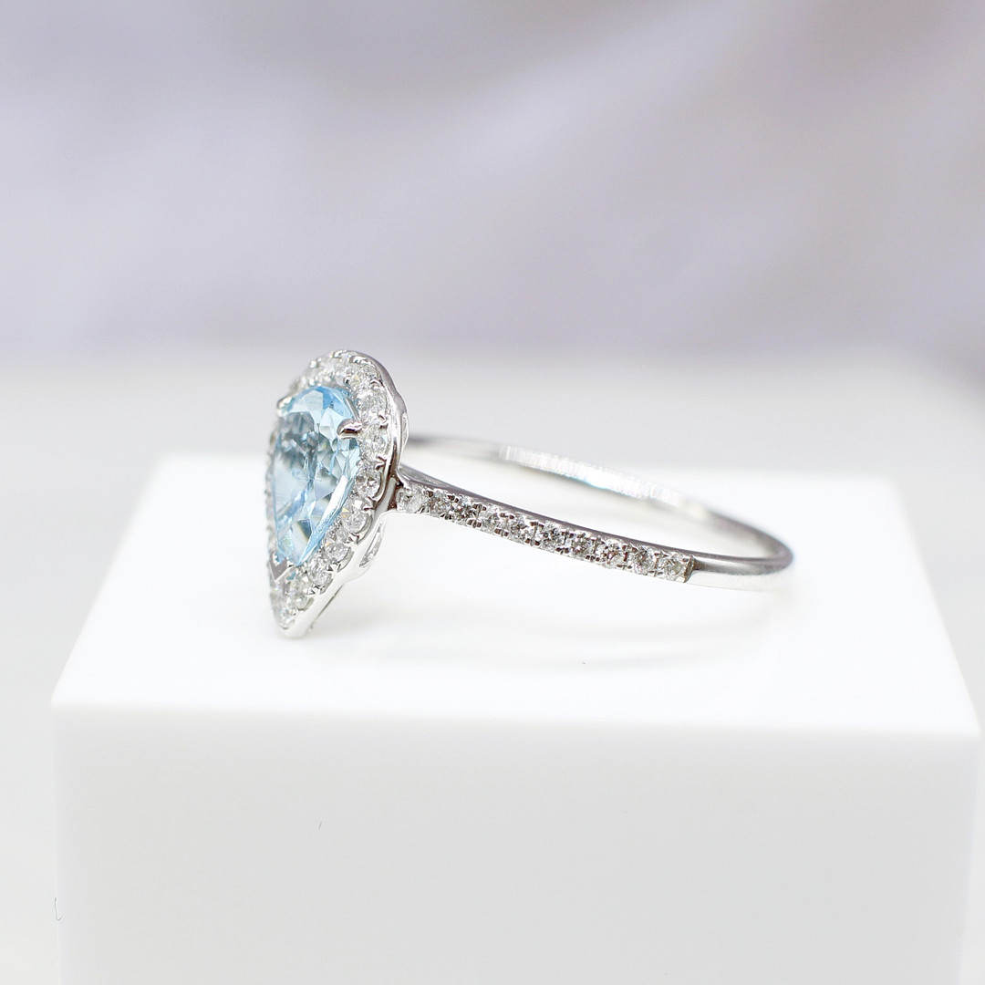 4447576. TROPFENRING MIT AQUAMARIN UND DIAMANT.