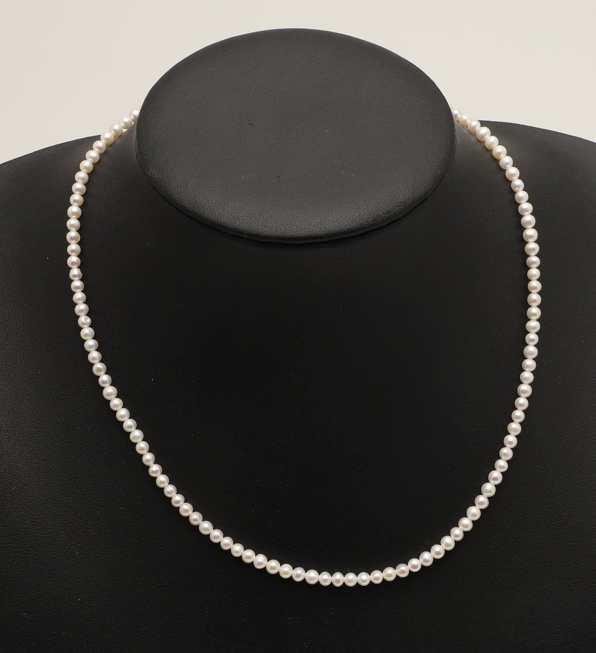 eine mit grauen Zuchtperlen auf feinem Verschluss aus 18-karätigem Gold und die andere mit 18-karätigem Goldverschluss.