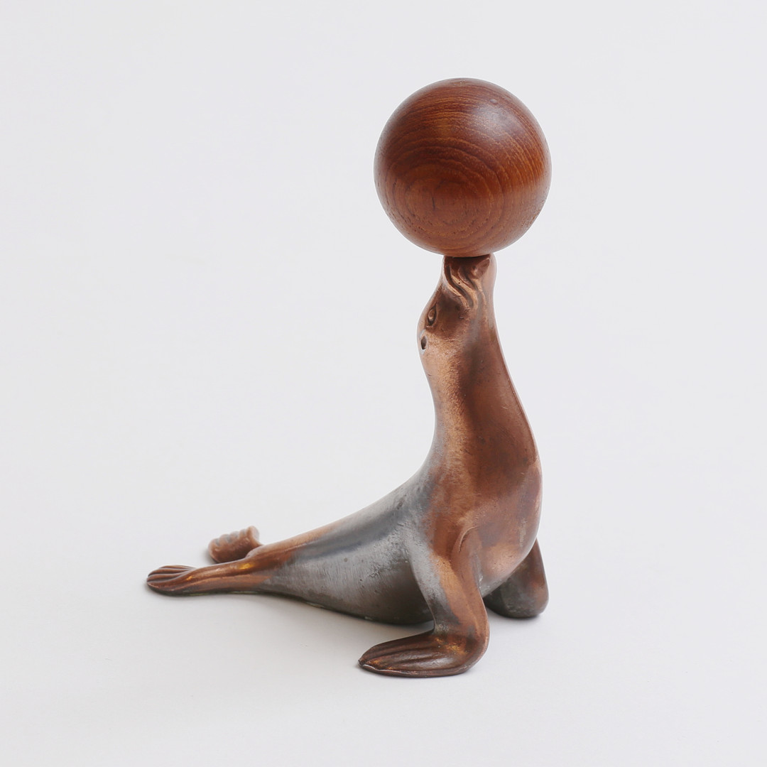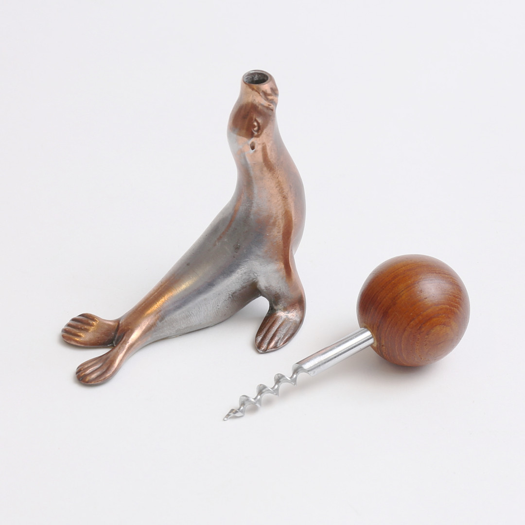 4449317. KORKENZIEHER in Form eines Seelöwen mit Kugel.