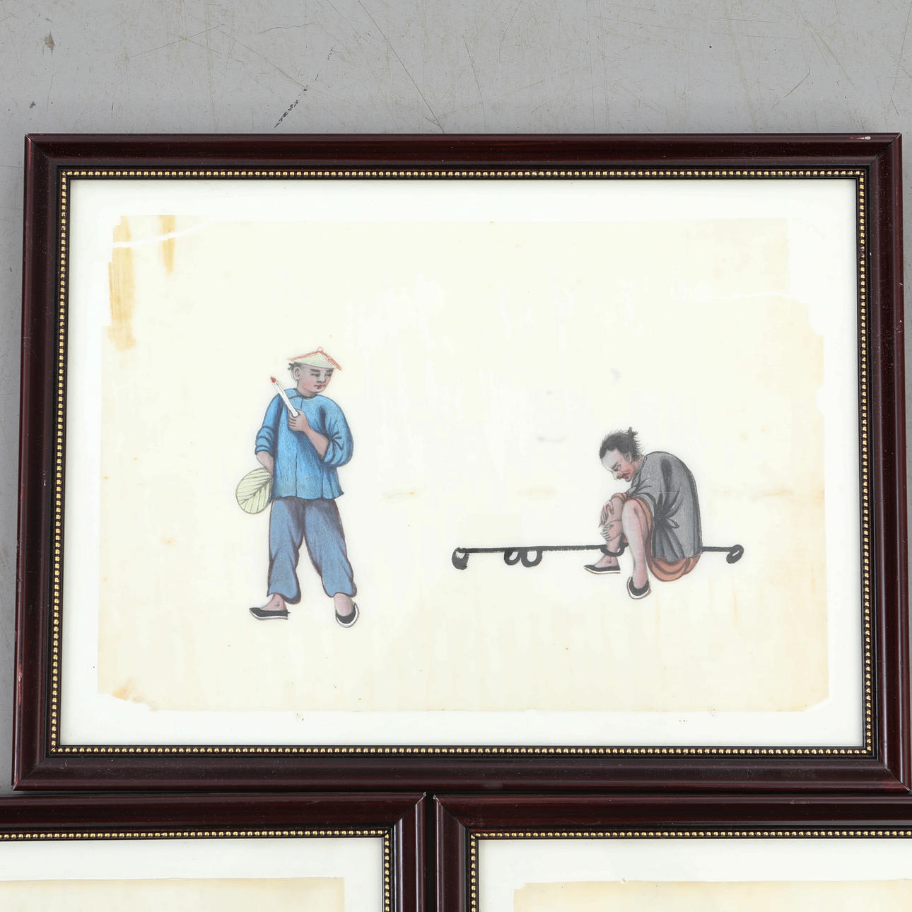 Gemälde, 7 chinesische Rohbilder auf Reispapier.