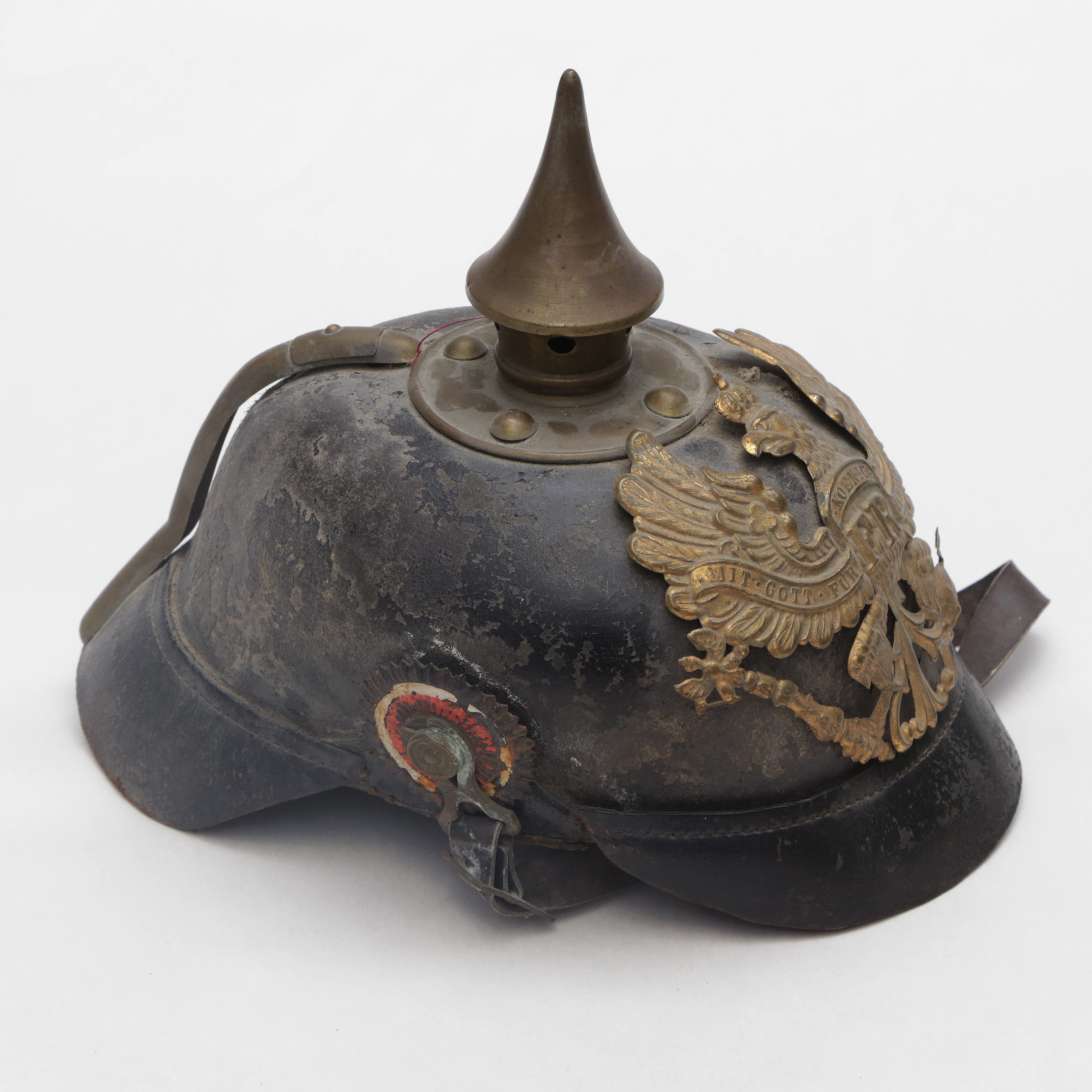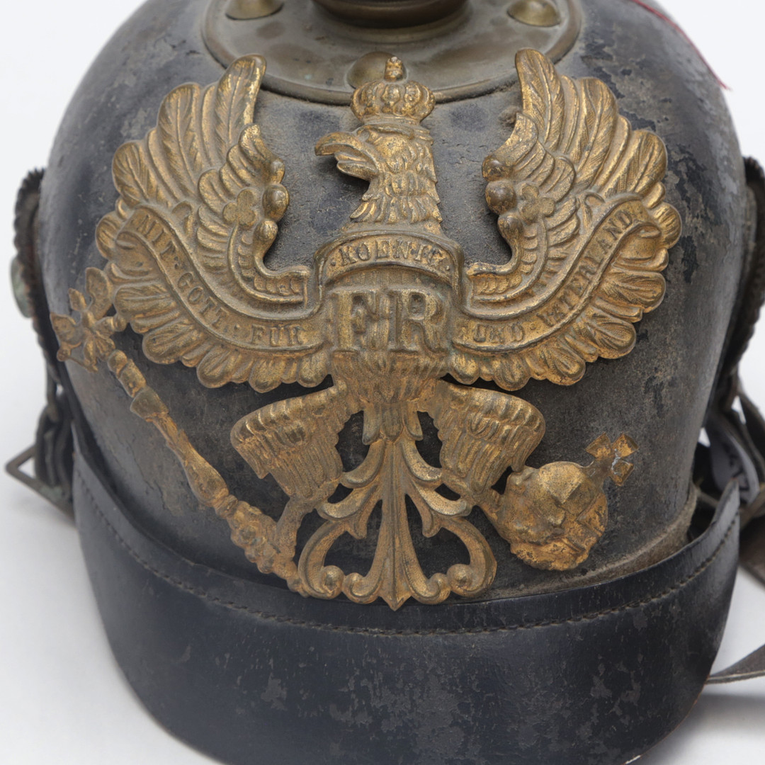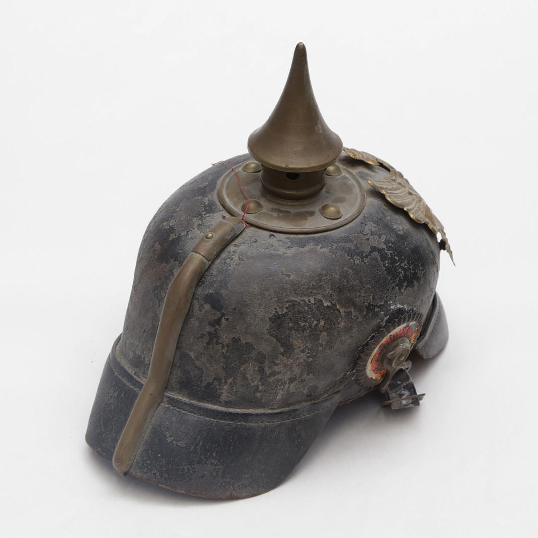 4452654. Kapuze aus Leder/Metallgurken/Helm, Preußen.