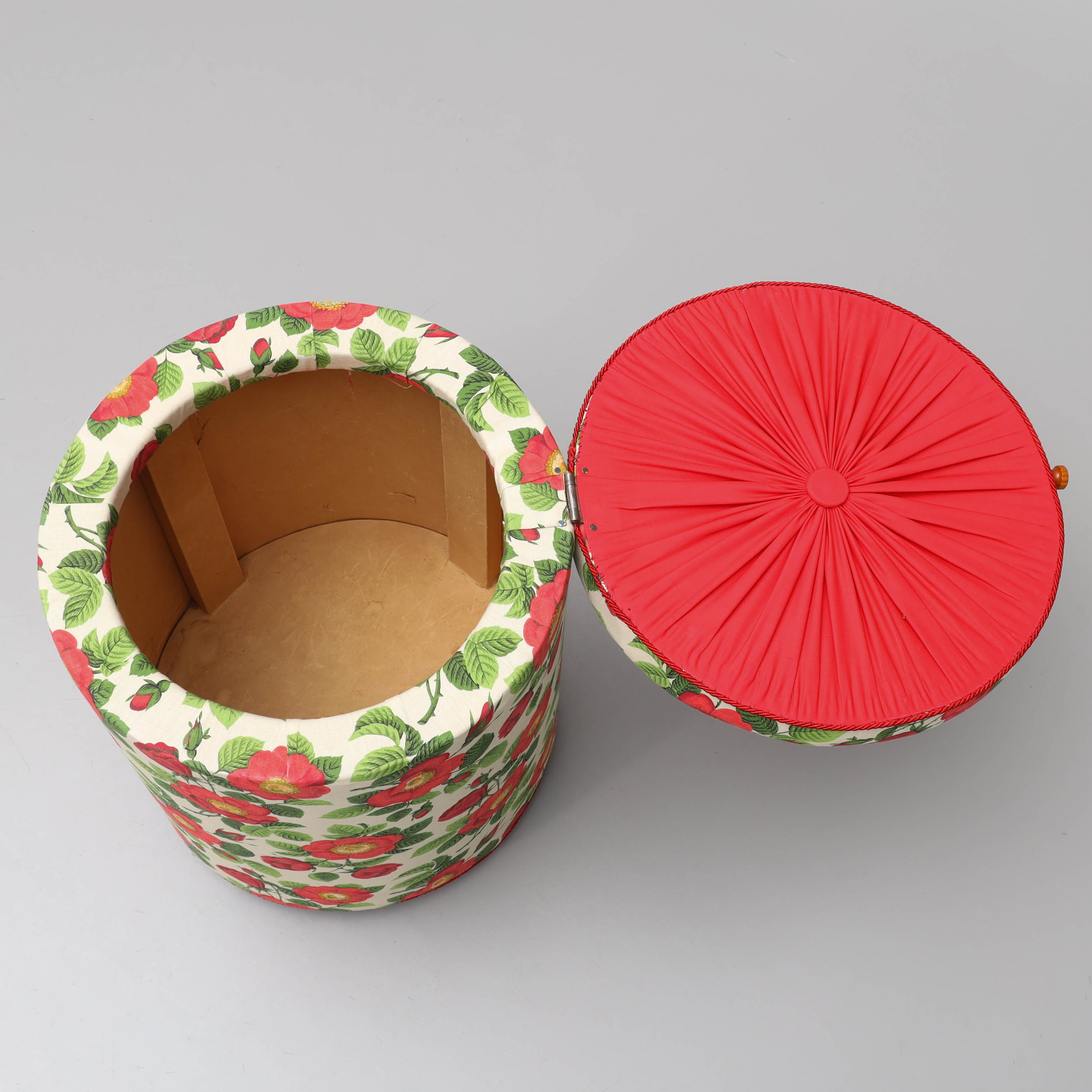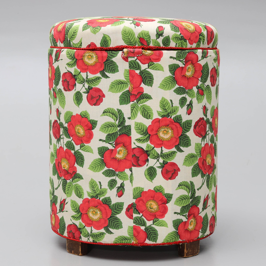 4453757. Nähhocker mit Stoffbezug, 20. Jahrhundert.