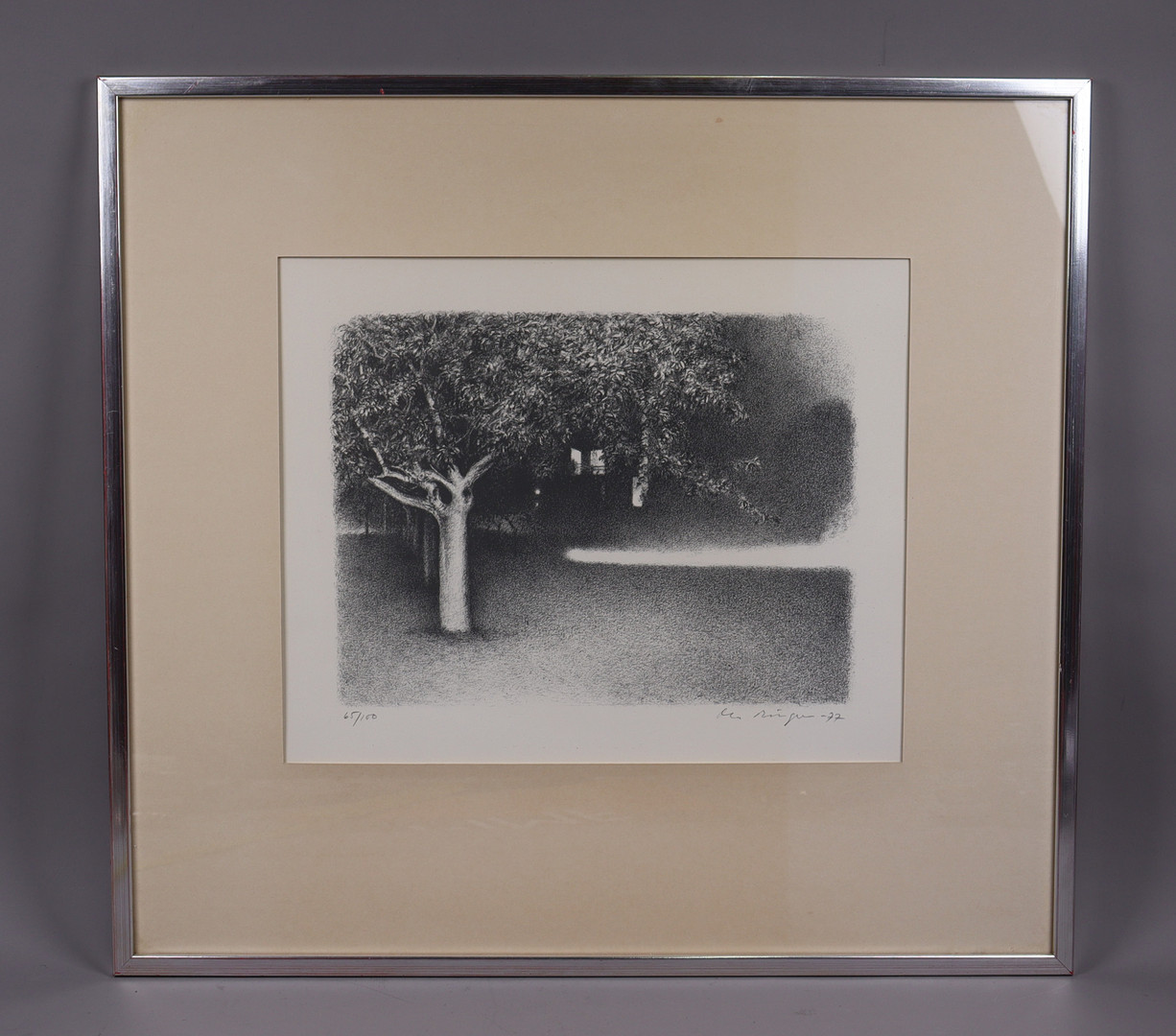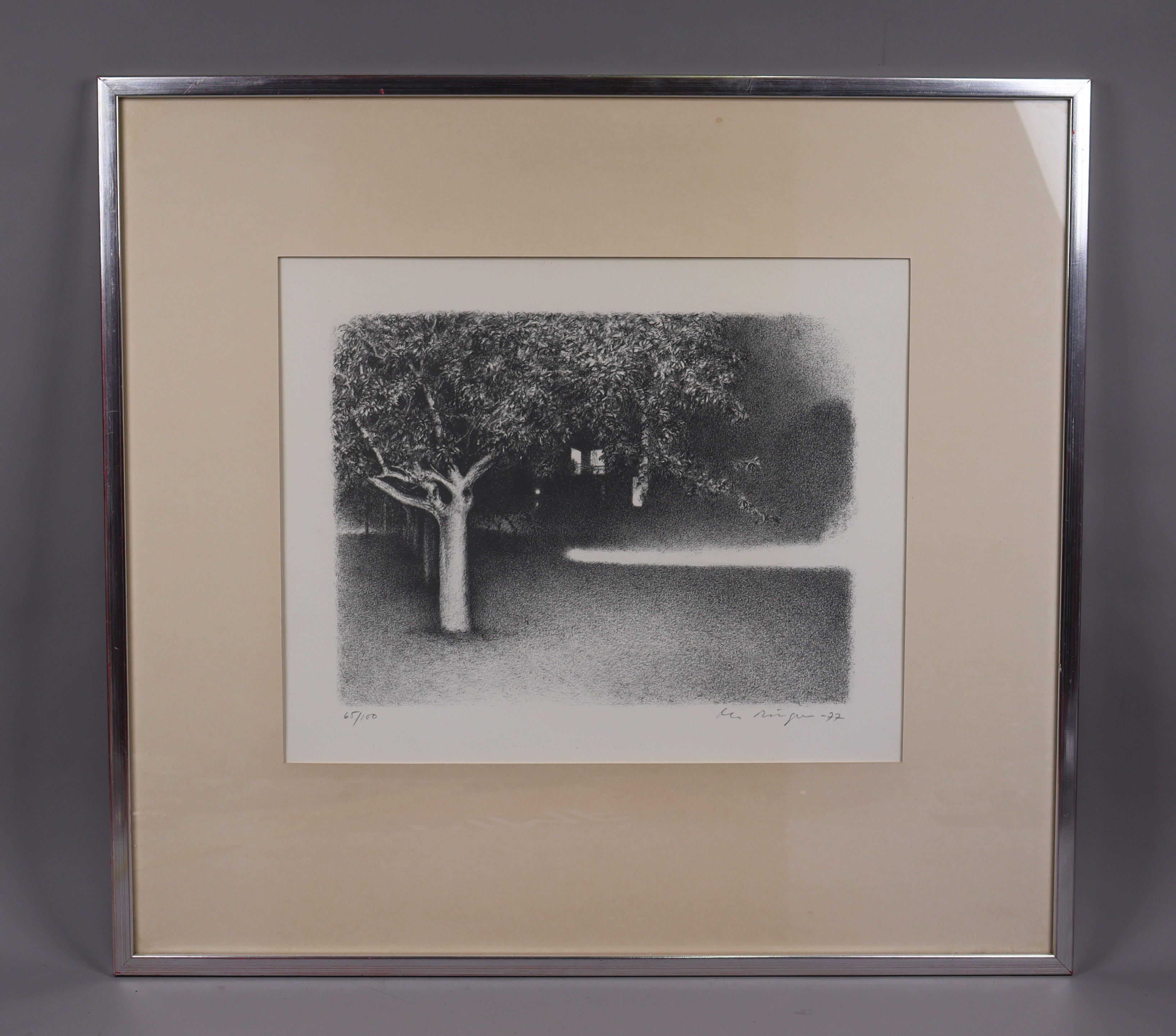4459687. OLA BILLGREN. Lithografie, Forststraße, dunkler Park.