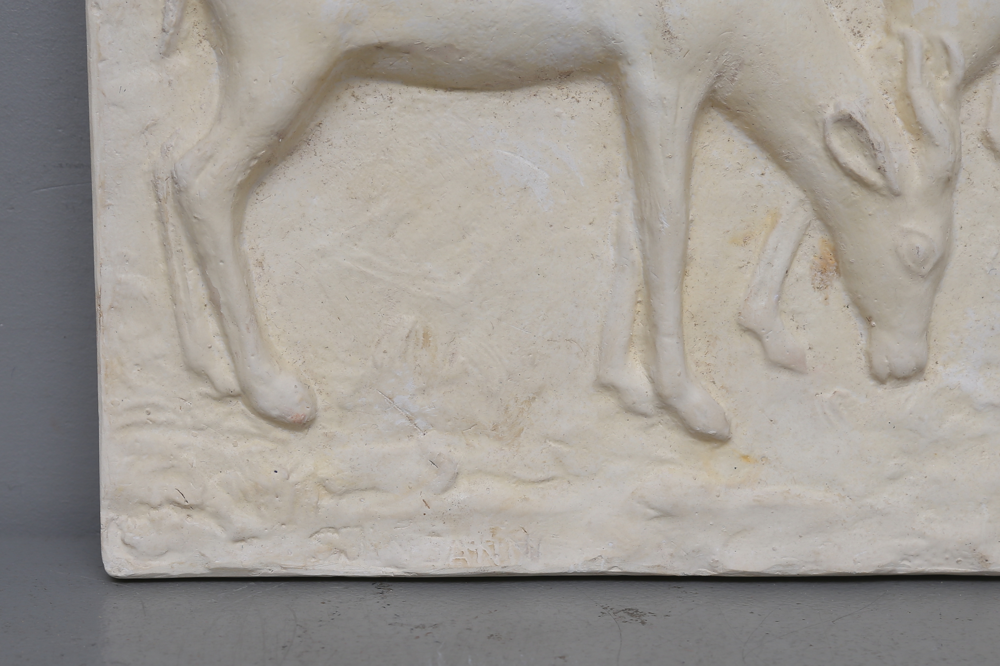 445980. OIDENTIFIERAD KONSTNÄR. Wandrelief, Gips, undeutlich signiert.
