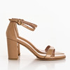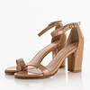 Lackierter Absatz mit verstellbarem Knöchelriemen und 8 cm hohem Absatz.