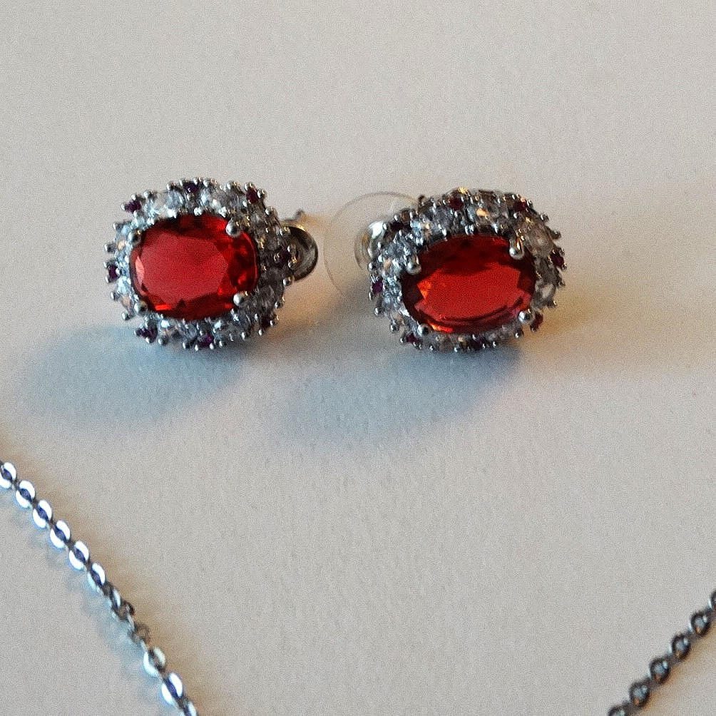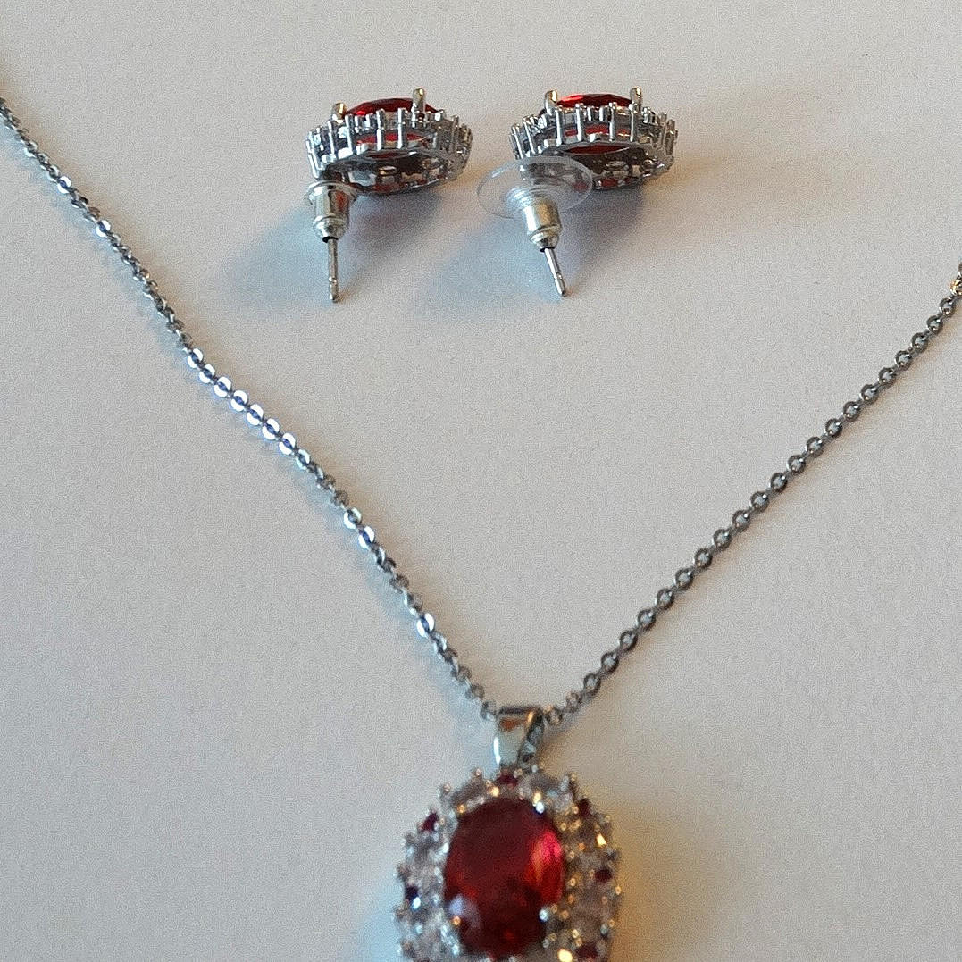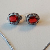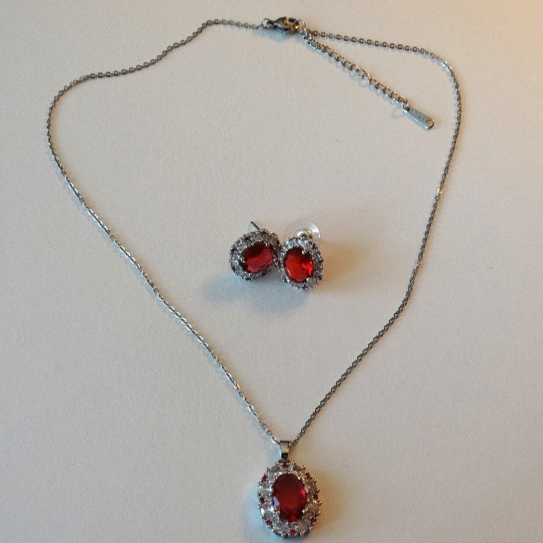 Modeschmuck, ca. Kette, ca. 45 cm lang, Anhänger, ca. 1,7 x 1,3 cm, Ohrstecker, ca. 1,5 x 1,2 cm.