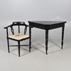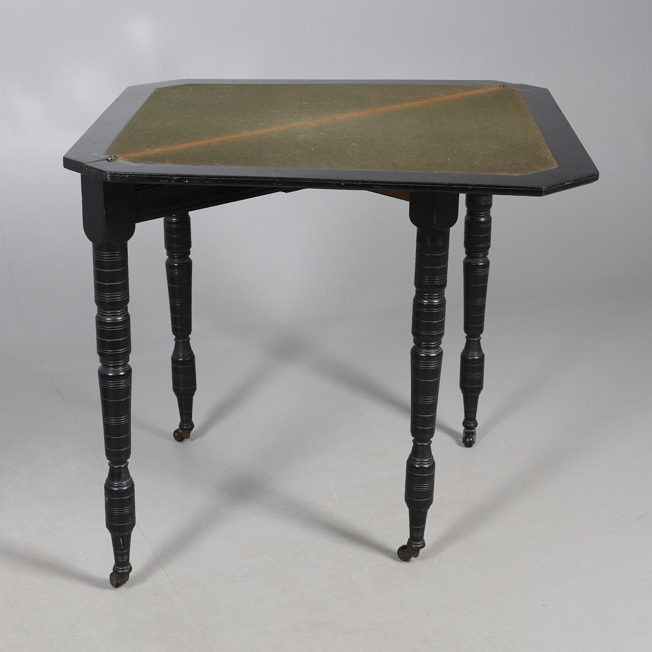 4466686. EIN EBONISIERTER KARTENTISCH VON EDWARDS UND ROBERTS UND EIN EBONISIERTER ECKSTUHL.