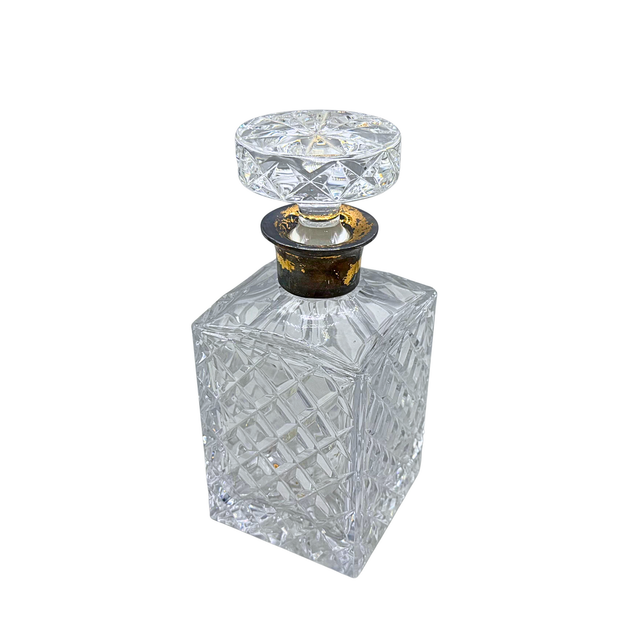 Eine Whisky-Karaffe aus Kristallglas mit Schliff und Stopfen. Der Hals ist aus 925er Sterling Silber gefertigt und punziert.