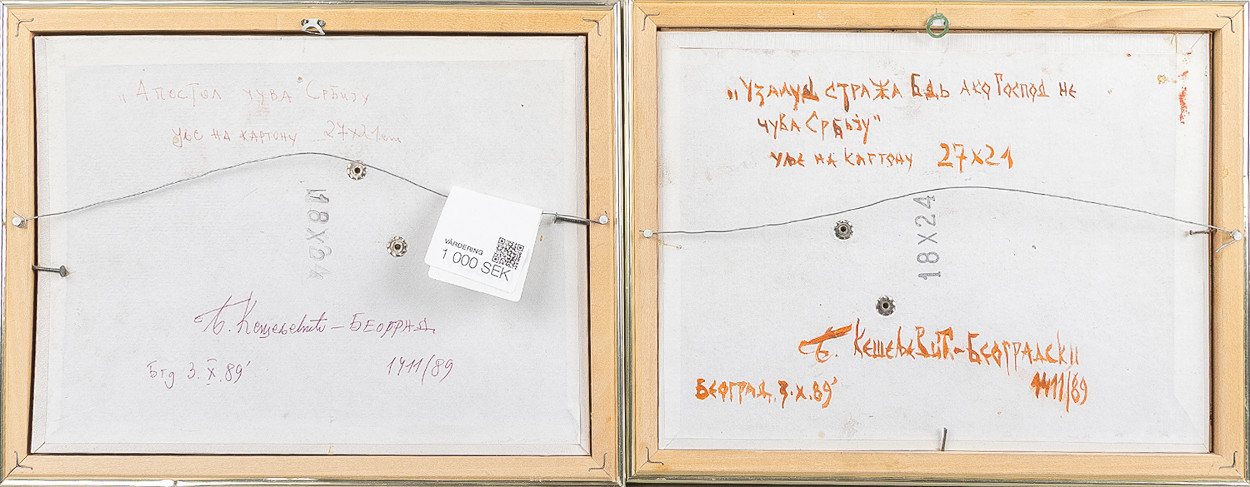 4468561. OIDENTIFIERAD KONSTNÄR. Sakrale Motive, 2 Stück, Mischtechnik.