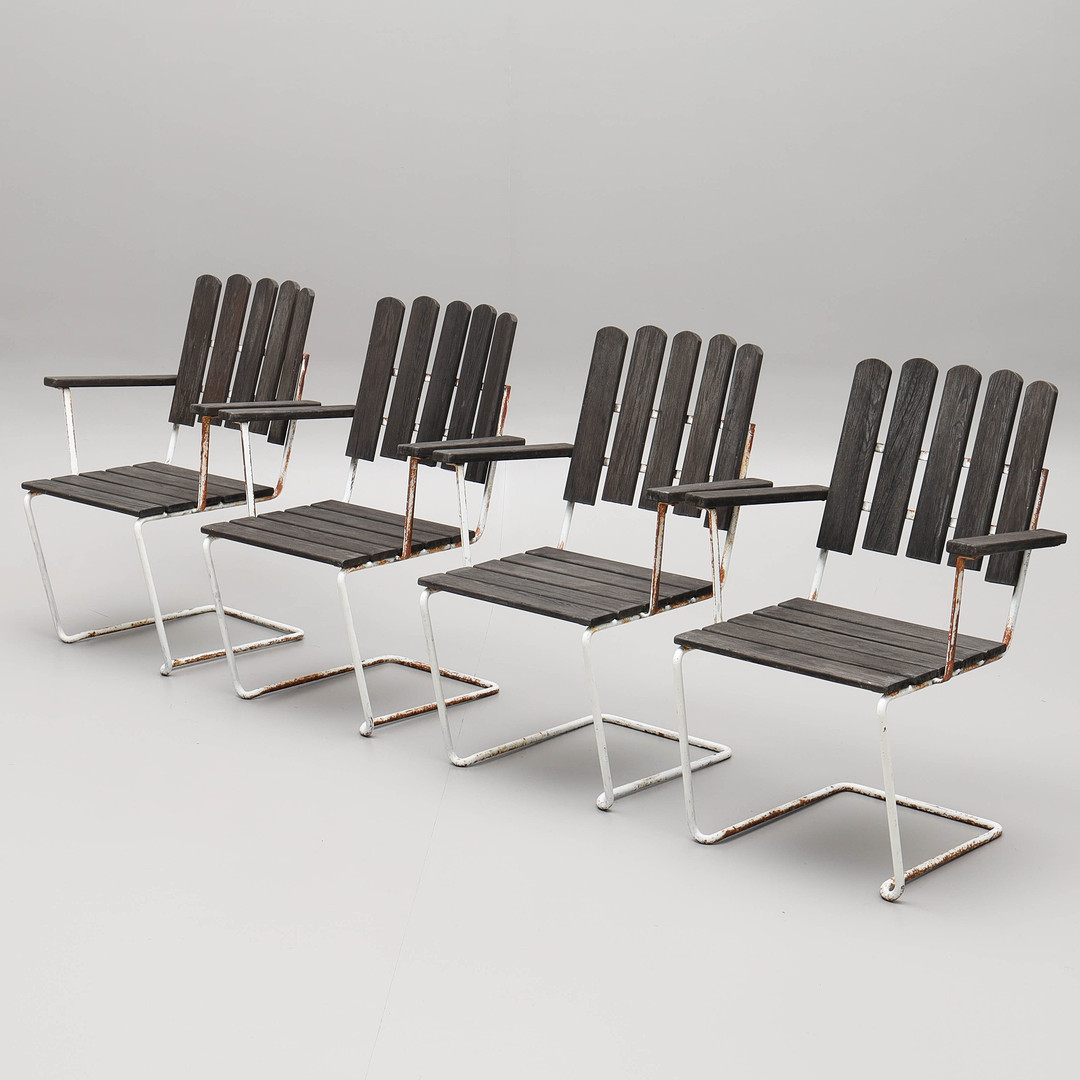 4471083. ARTHUR LINDQVIST. „A2“, 4 stapelbare Sessel, Marke Grythyttan, spätere Hälfte des 20. Jahrhunderts.
