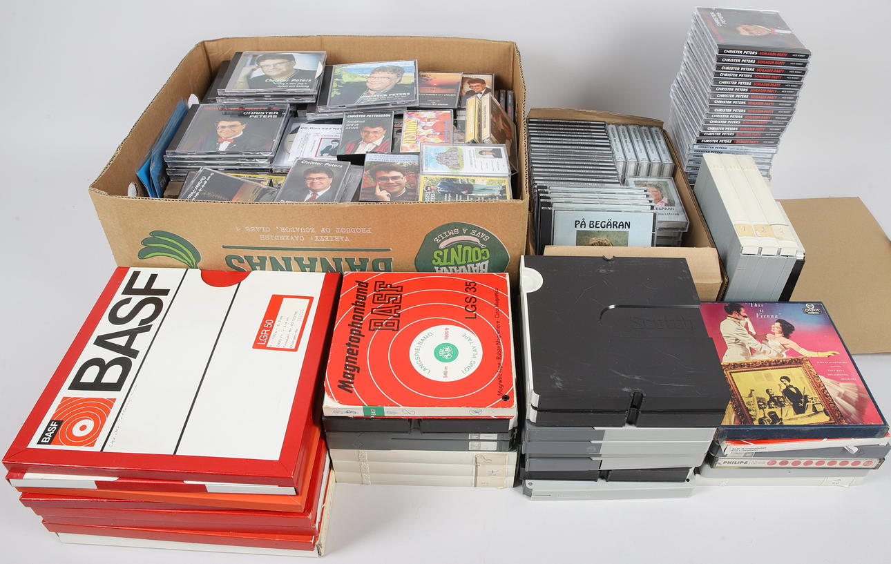 Christer Peters eigene Aufnahmen. Kassetten (26 Stück) CD (ca. 150 Stück) CD-Singles (16 Stück) Vinyl-Singles (3 Stück) Super 8-Filme (ca. 30 Stück) Anna-Lena Löfgren-Aufnahmen. Kassetten (28 Stück) cd (28 Stück)