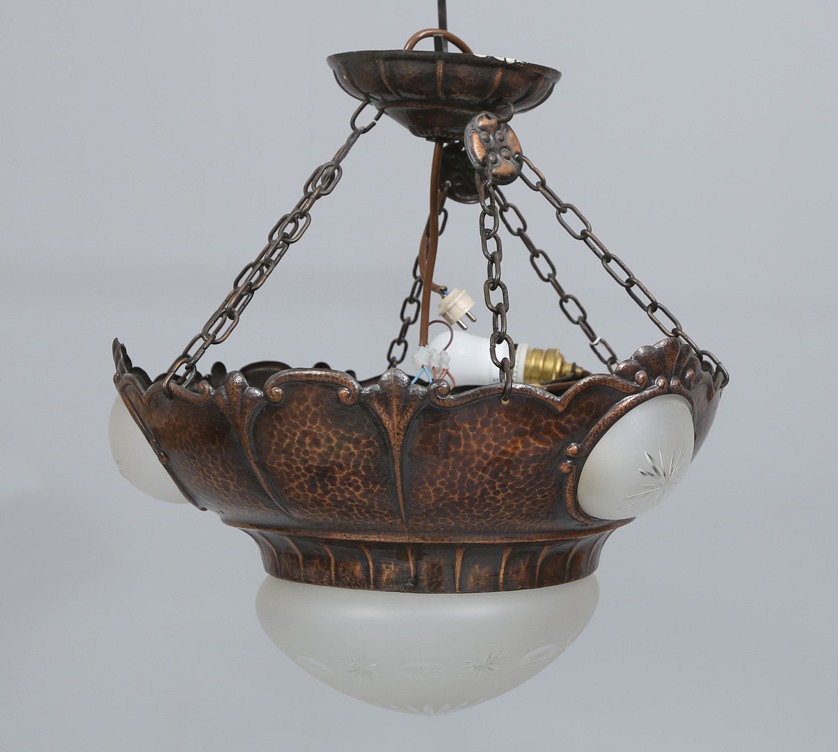 4471379. Eine Kupfer-Deckenlampe, Jugendstil.