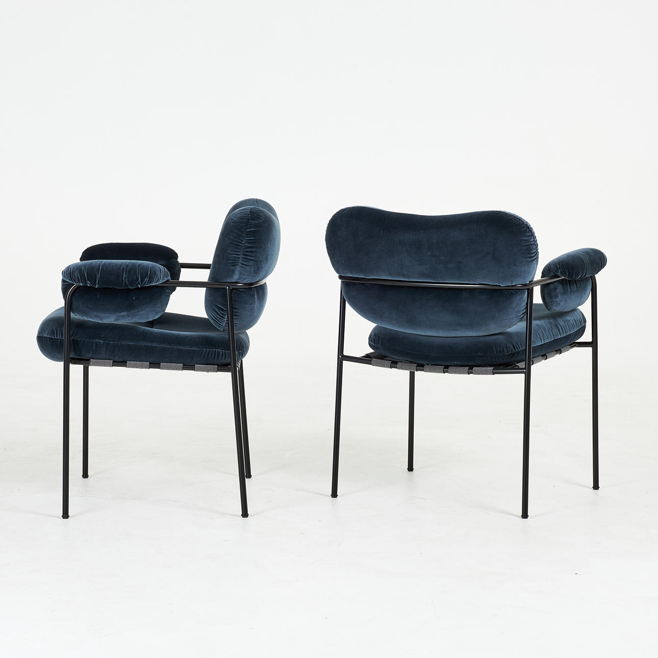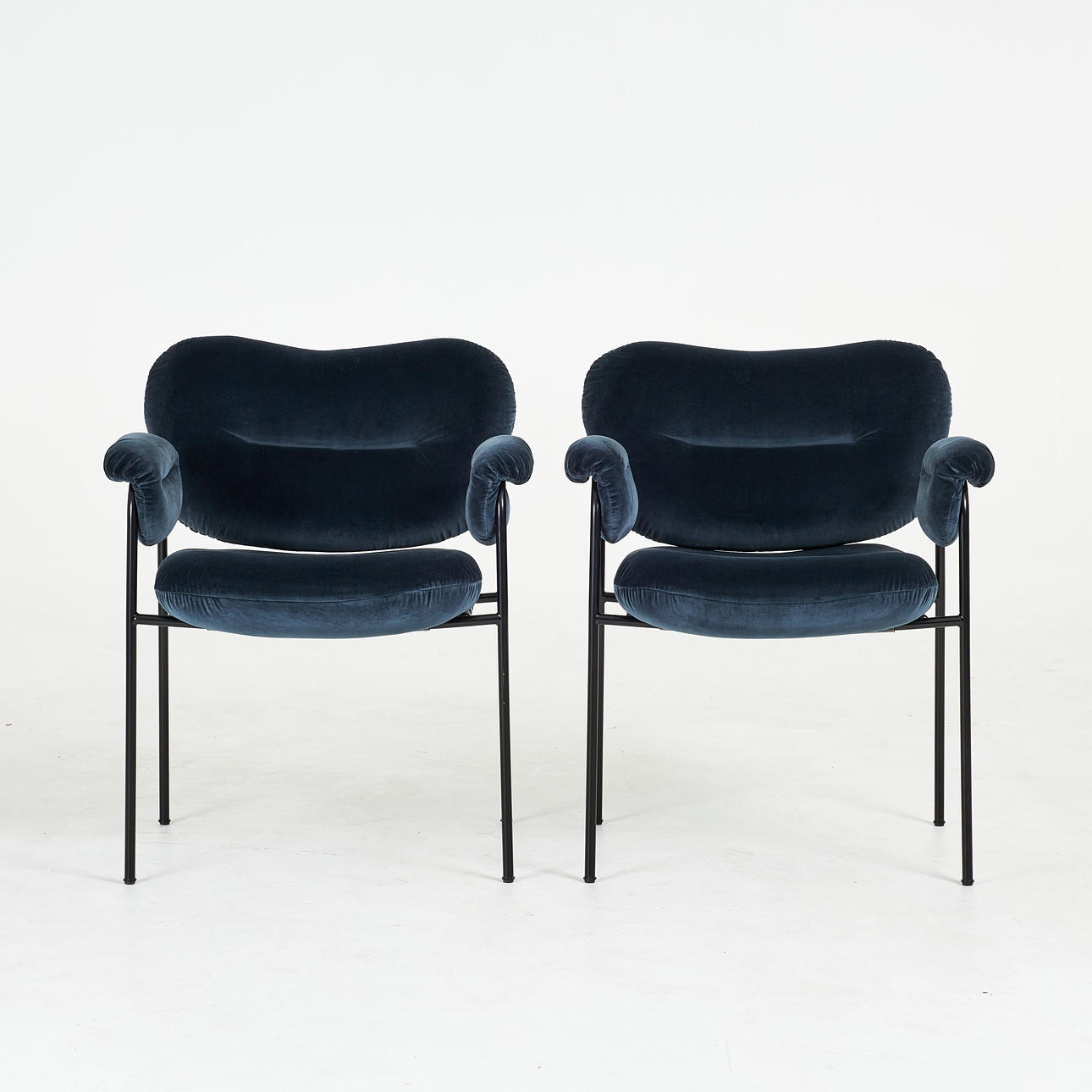 ANDREAS ENGESVIK. Ein Paar Stühle, „Bollo“, Fogia, zeitgenössisches, schwarz lackiertes Metallgestell, bezogen mit Textil Harald dunkelblau.