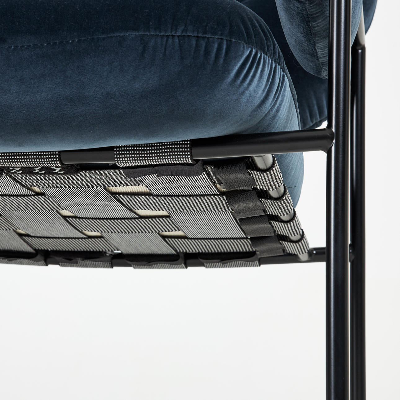 4473675. ANDREAS ENGESVIK. Ein Paar Stühle, „Bollo“, Fogia, zeitgenössisches, schwarz lackiertes Metallgestell, bezogen mit Textil Harald dunkelblau.