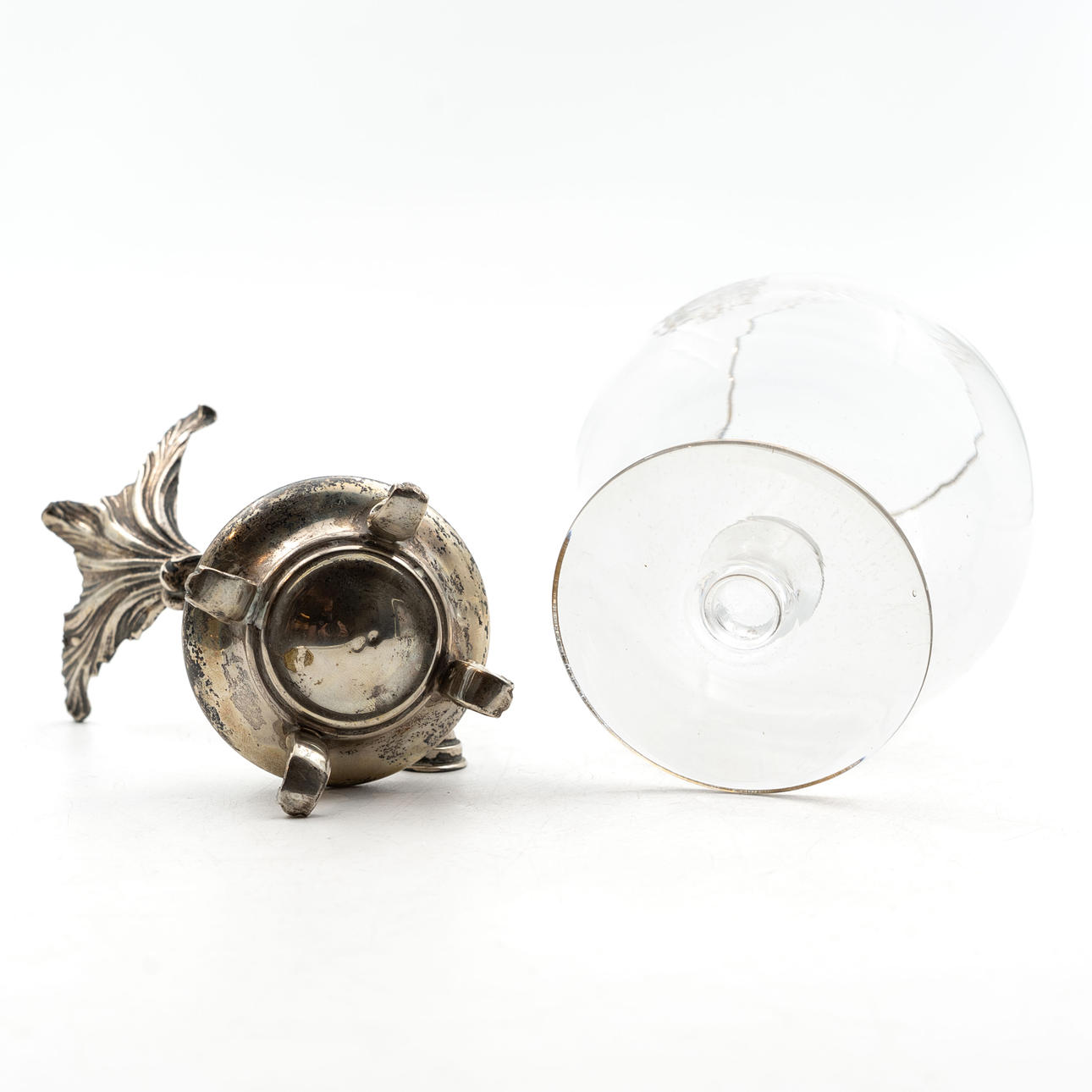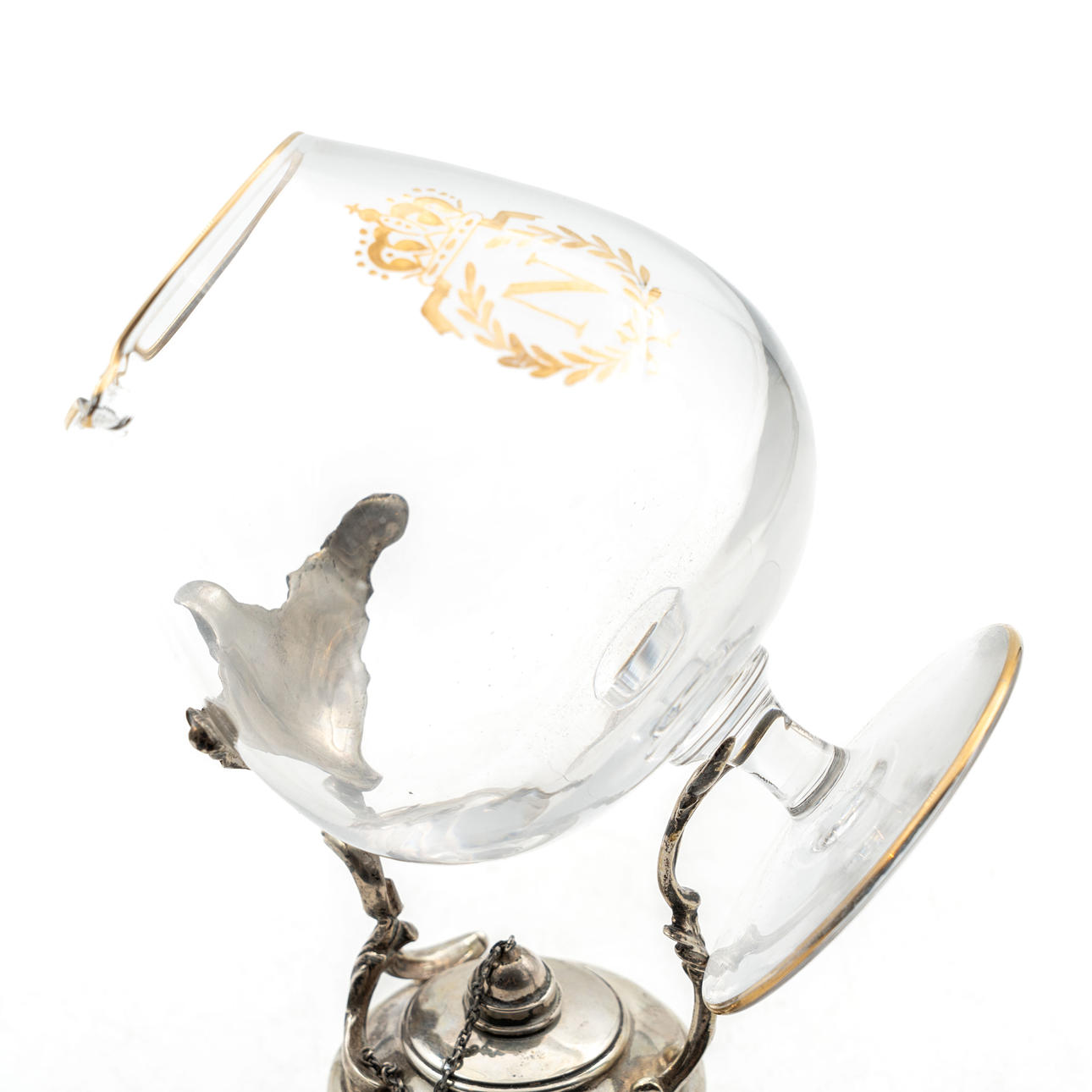 COGNACWÄRMER MIT GLAS, Silber, 20. Jahrhundert.