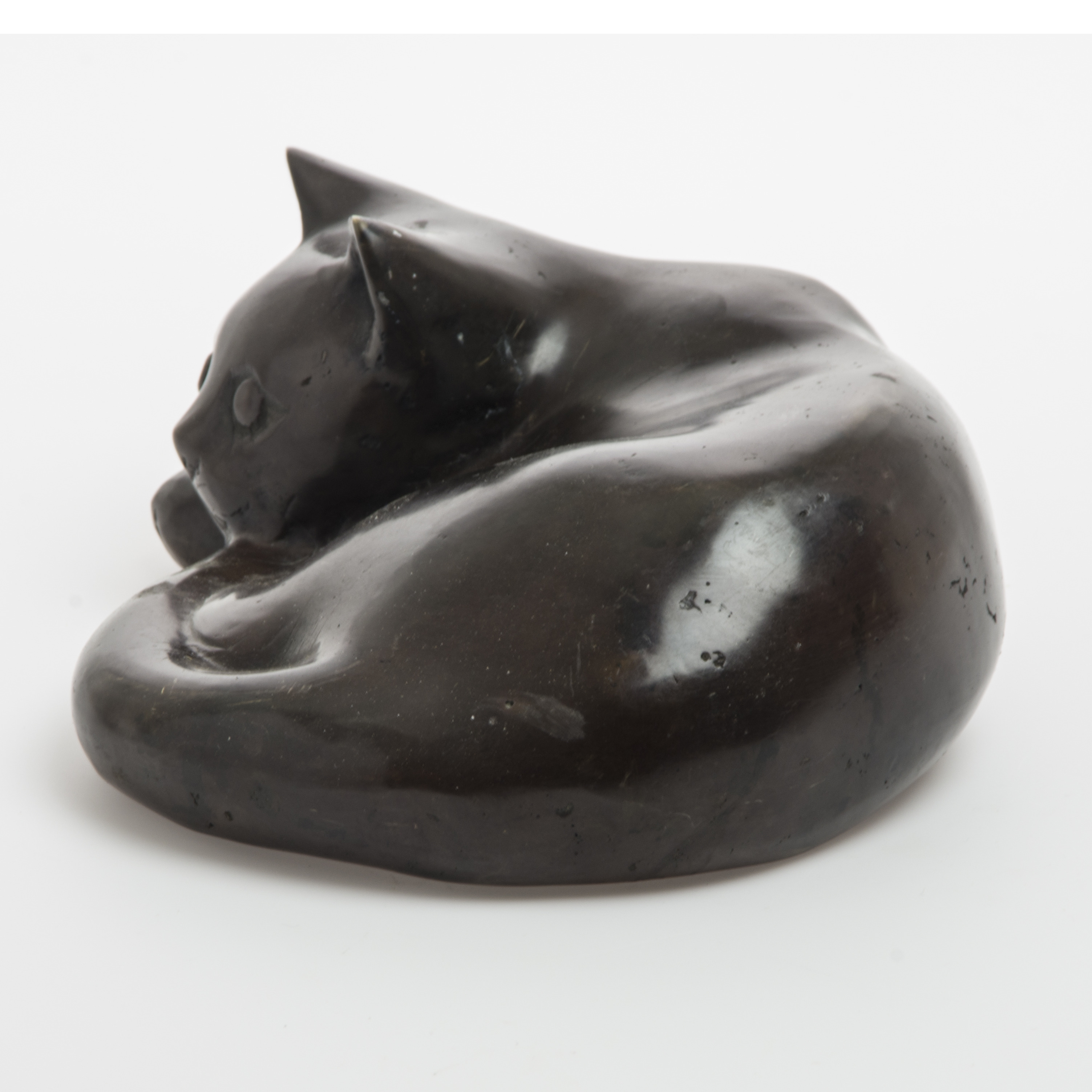 447440. PLASTIKEN, liegend Katze, Bronze zeitgenössisch.