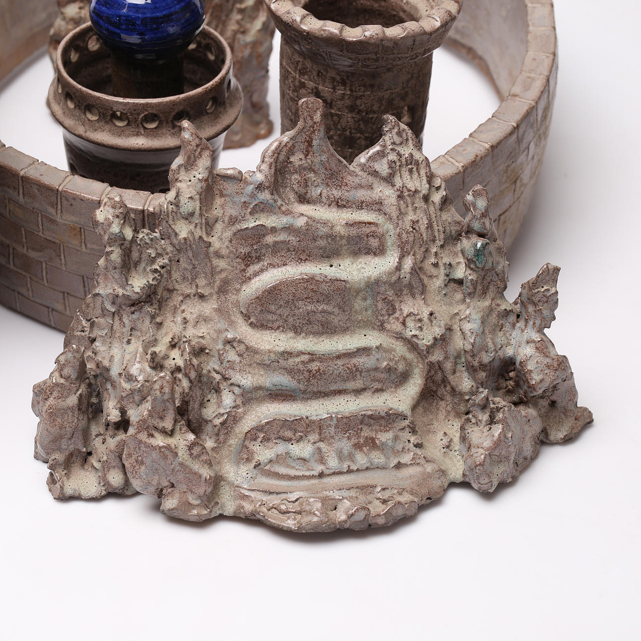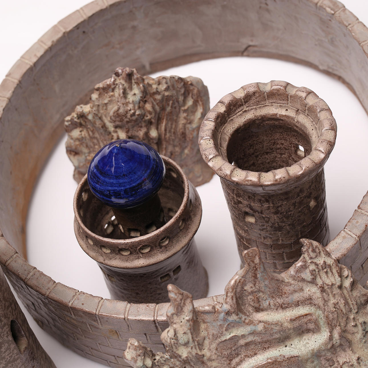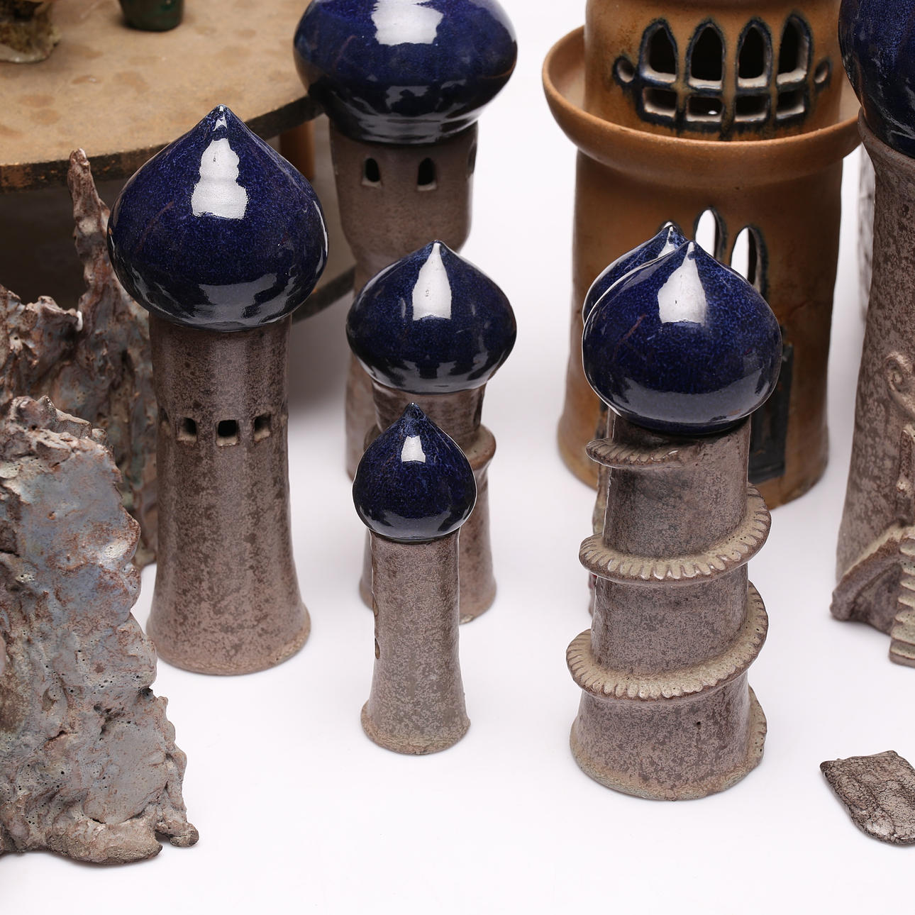 Großes Grundstück mit Teilen/Skulpturen. Höhe des höchsten Turms ca. 40 cm.