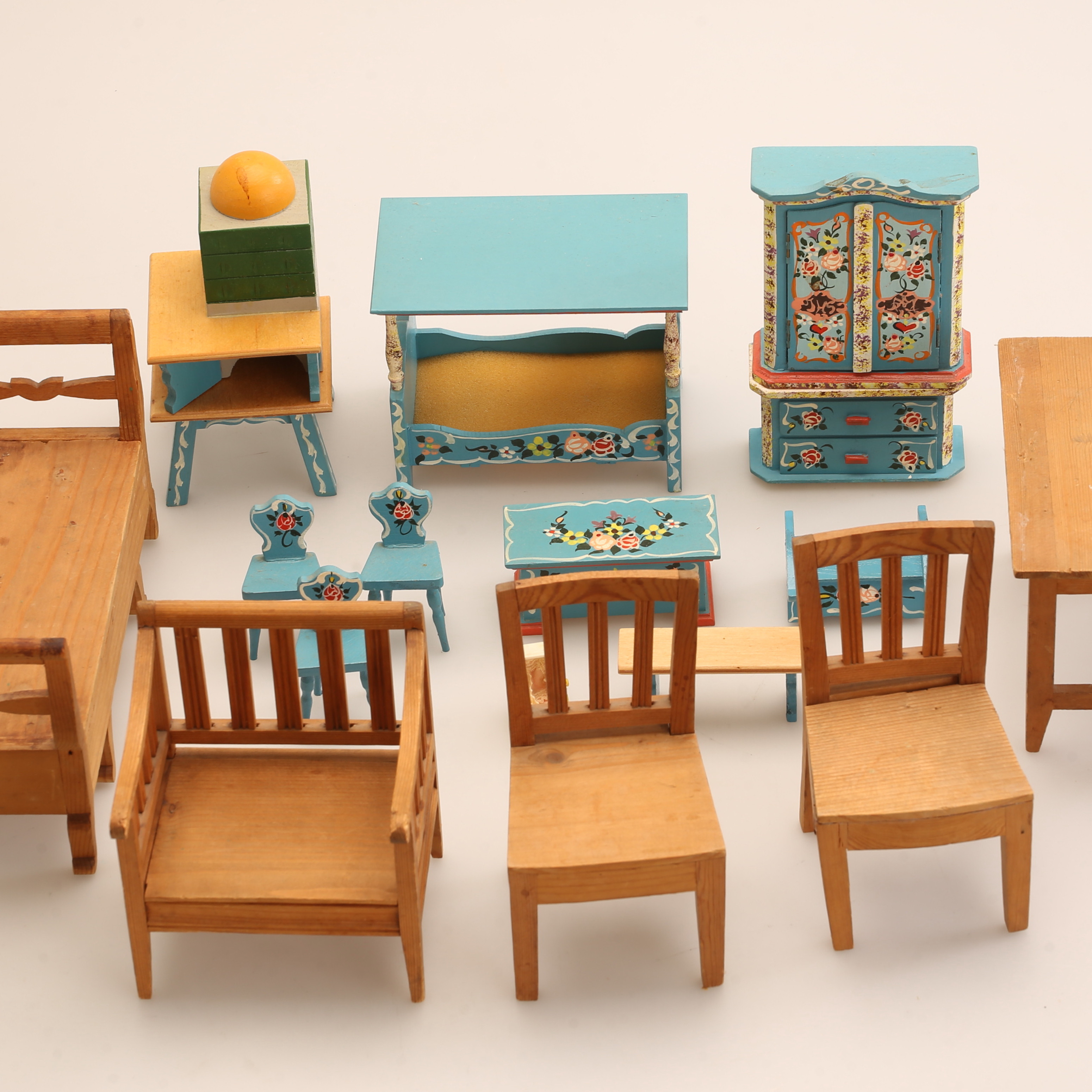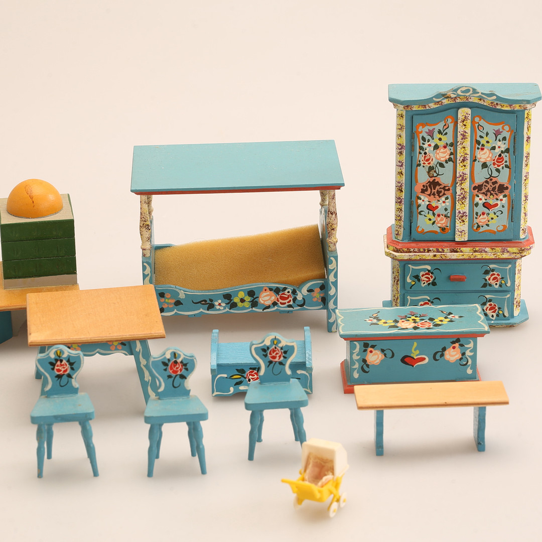 4477532. PUPPENMÖBEL, Holz, teilweise bemalt, 20. Jahrhundert.