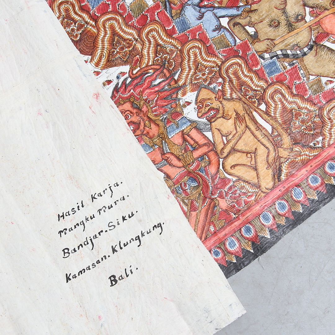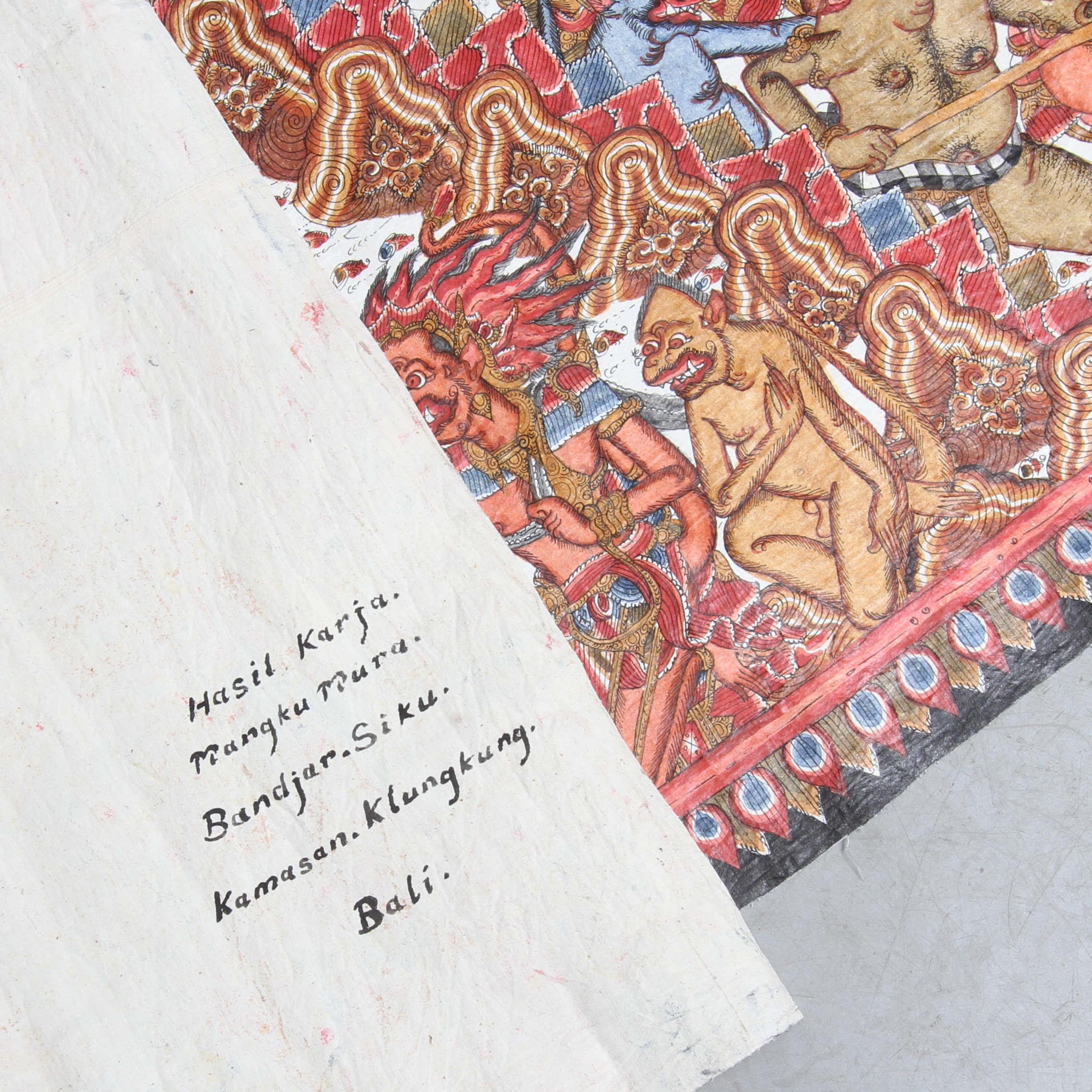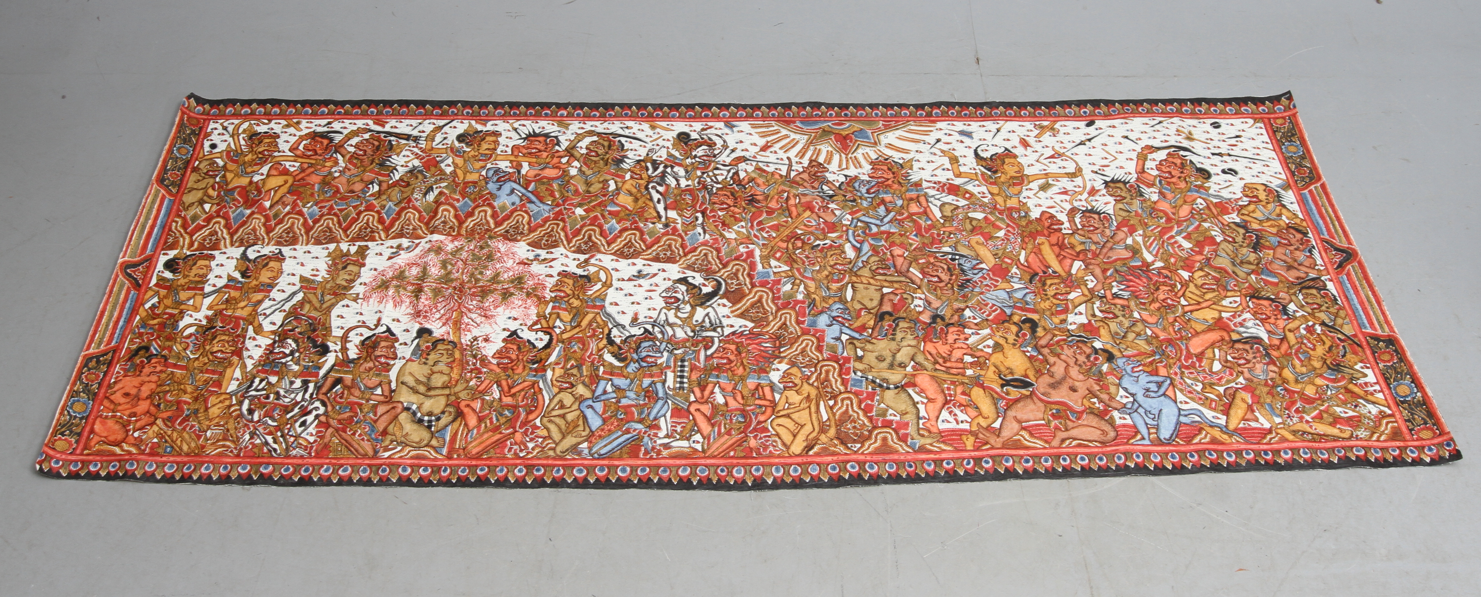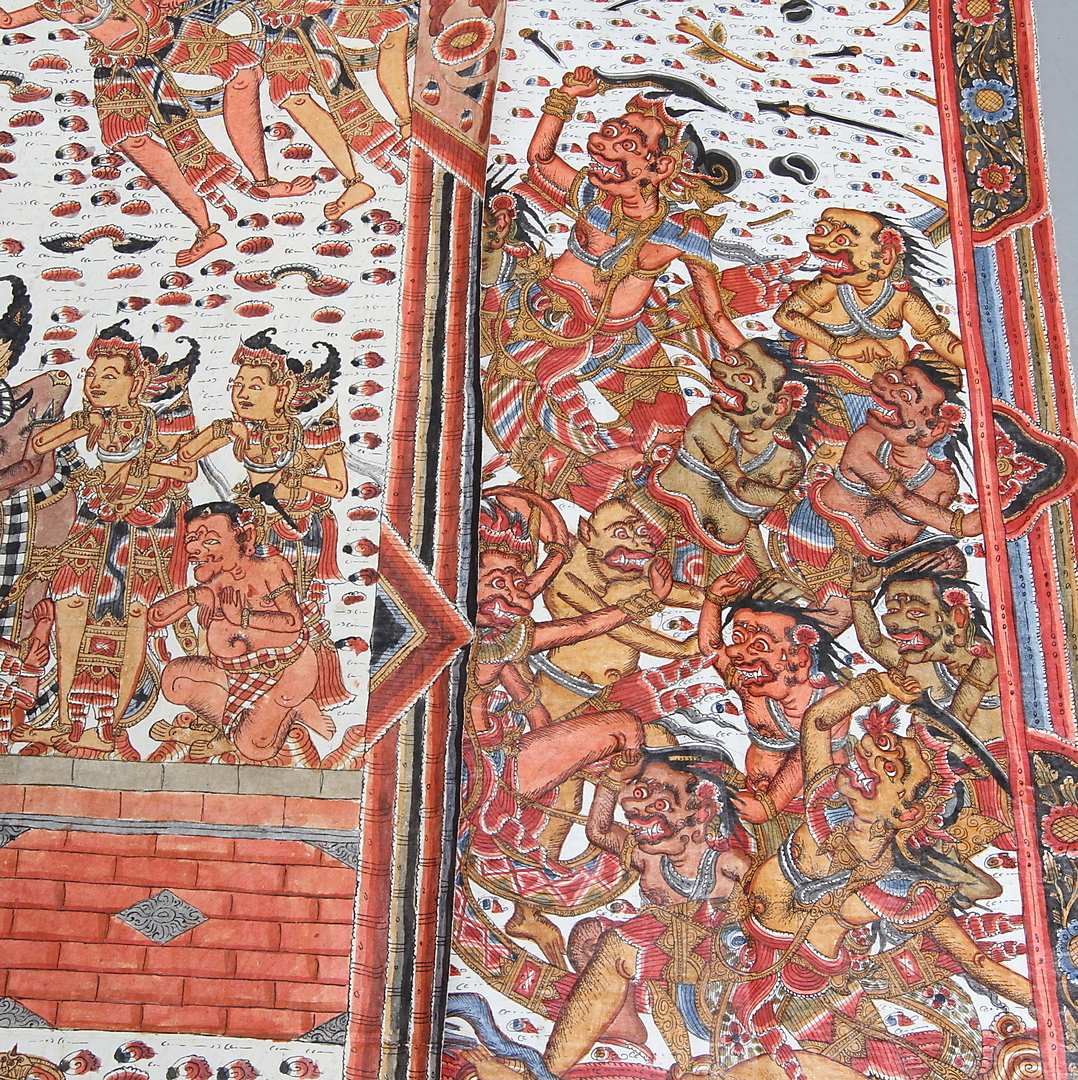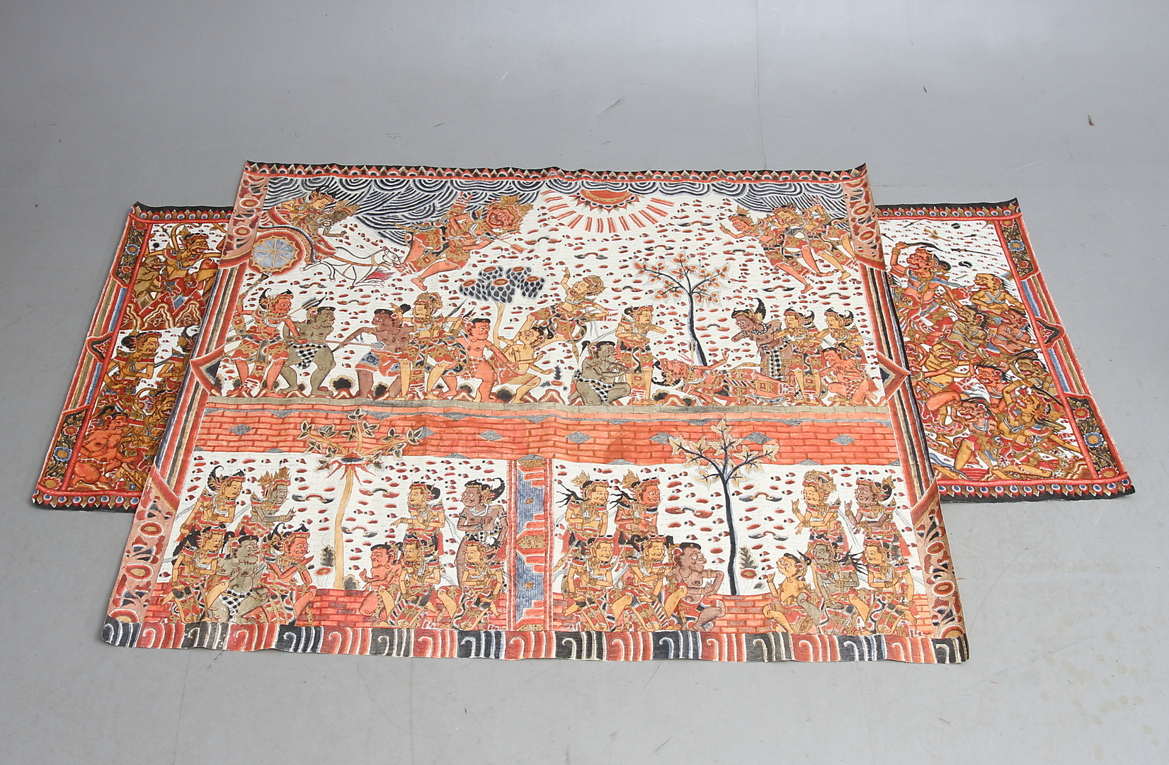 448079. GEMÄLDE, 2 Stück, Bali, Stoff, 20. Jahrhundert.