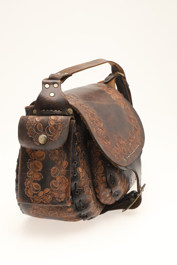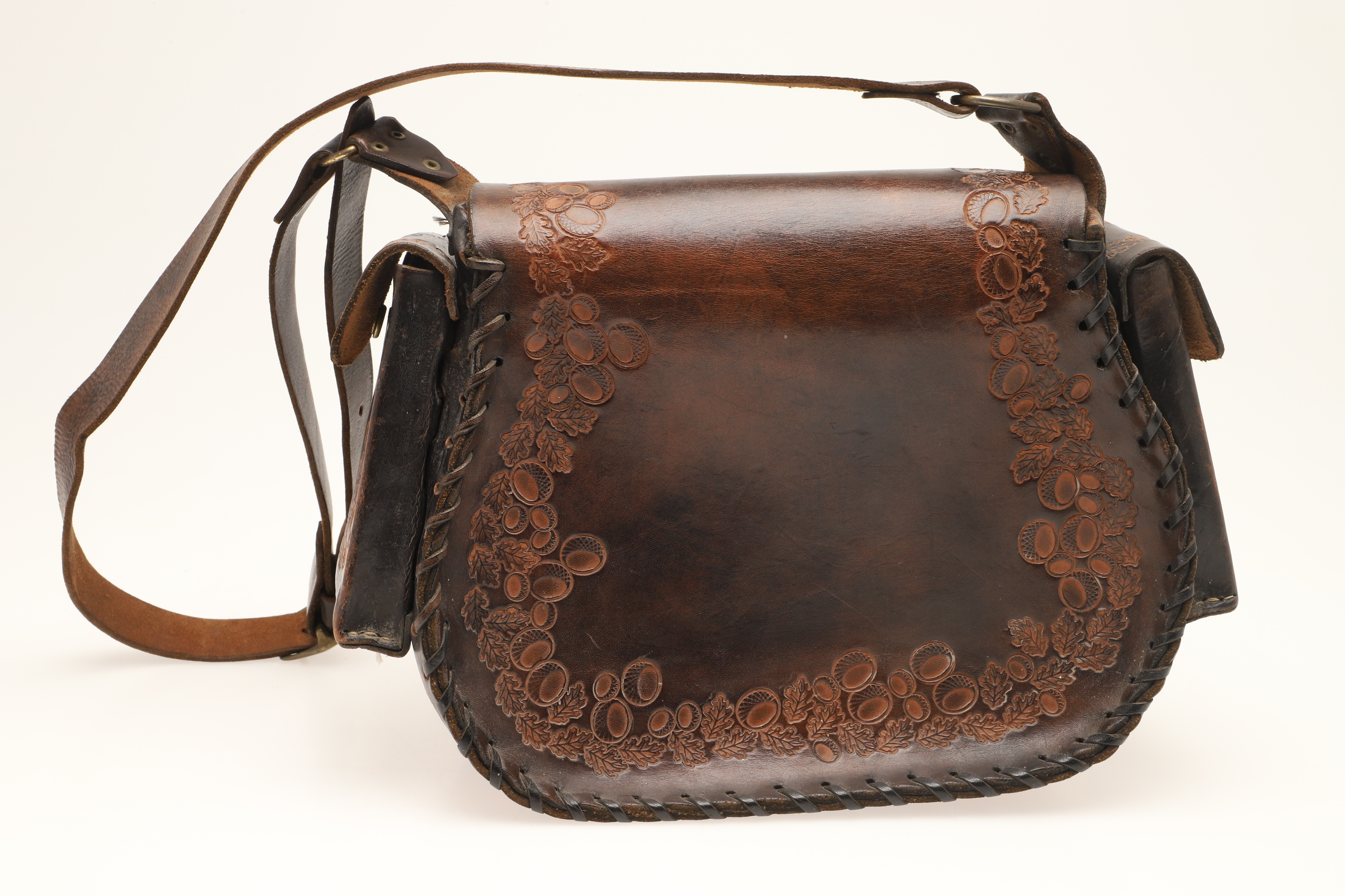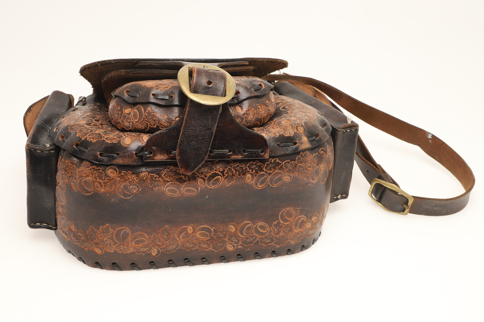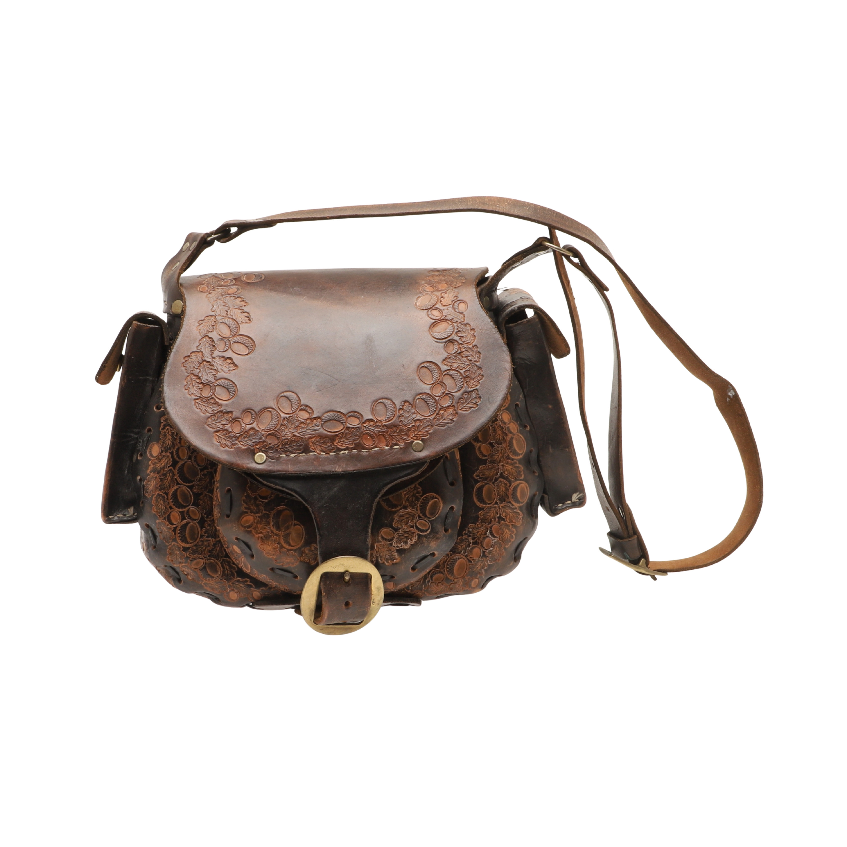 4481323. EINE TASCHE ODER HANDTASCHE AUS LEDER MIT PRÄGUNG IM VINTAGE-STIL.