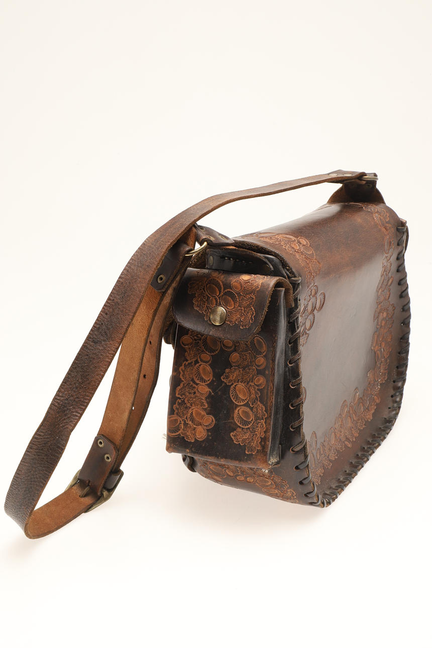 4481323. EINE TASCHE ODER HANDTASCHE AUS LEDER MIT PRÄGUNG IM VINTAGE-STIL.