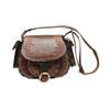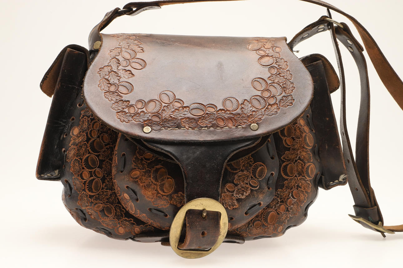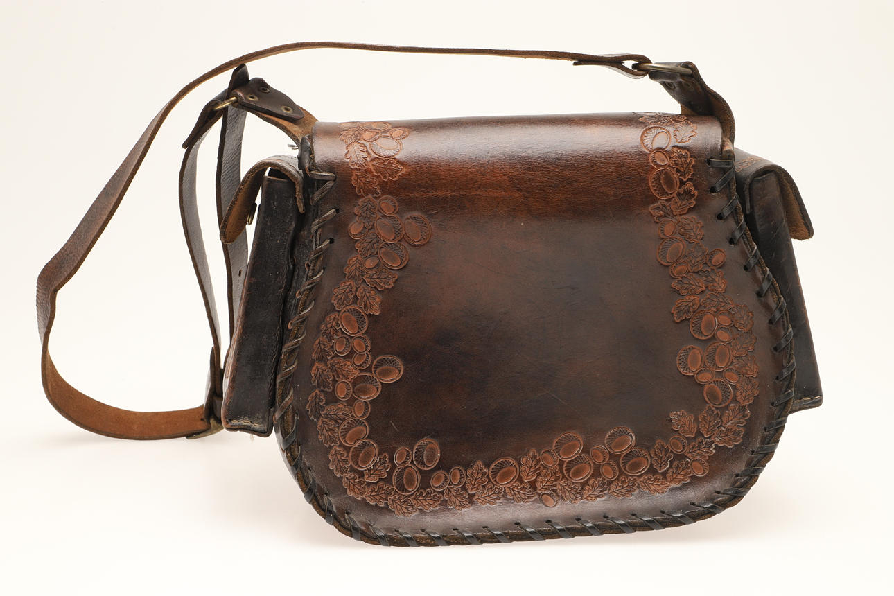 EINE TASCHE ODER HANDTASCHE AUS LEDER MIT PRÄGUNG IM VINTAGE-STIL.