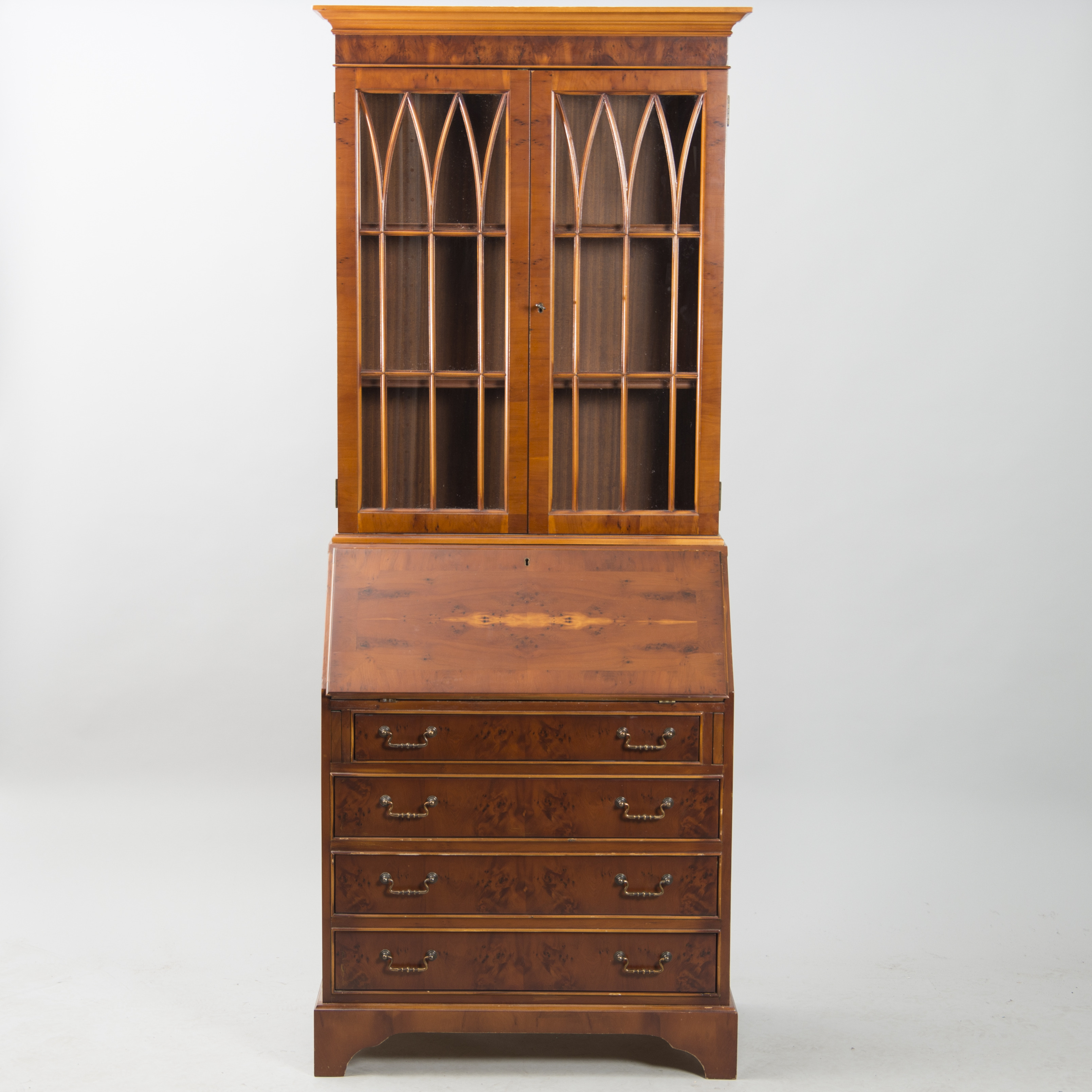 448199. SLIDKLAFF SEKRETÄR MIT DISPLAYAUFSATZ, Eibe, englischer Stil.