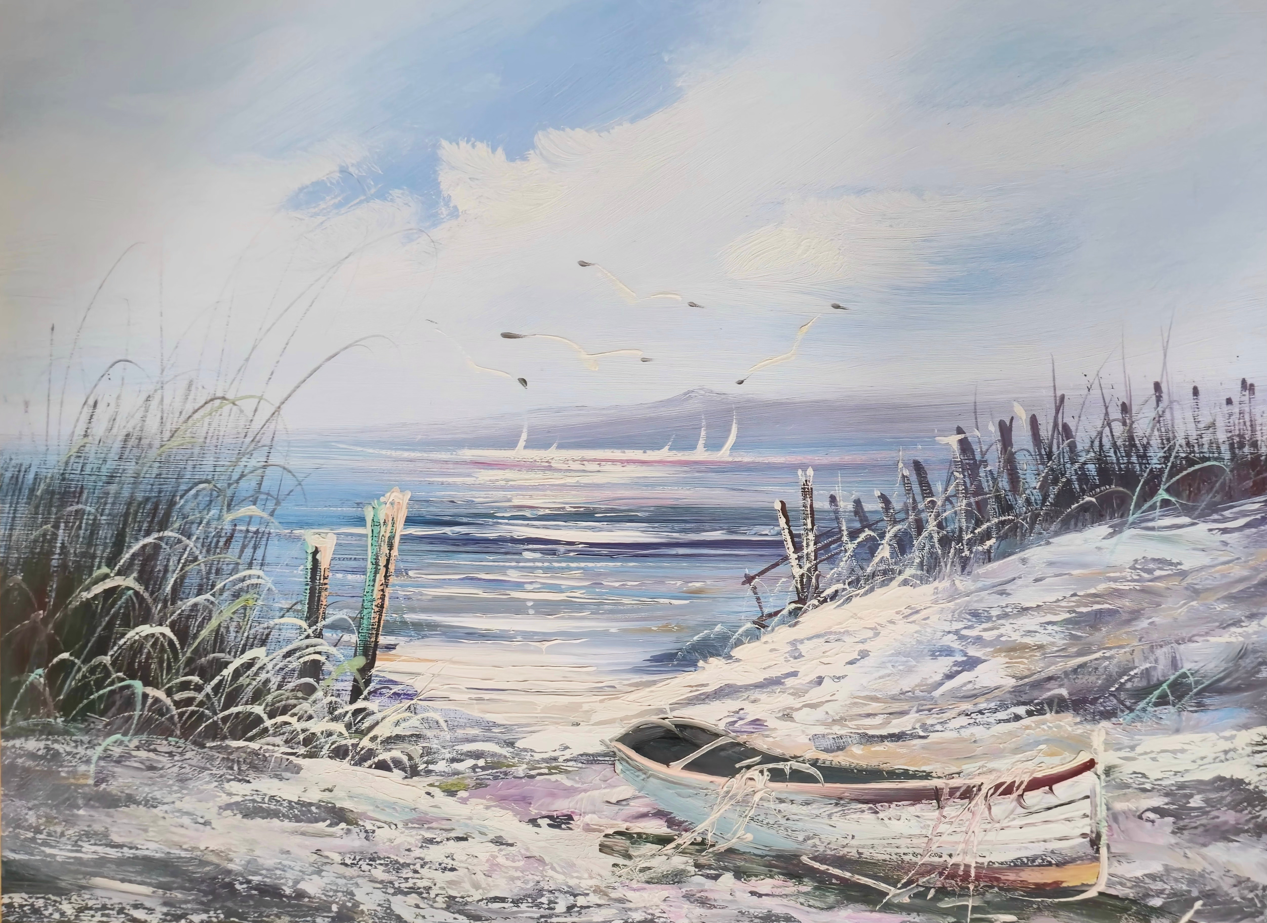4484041. JACHTHAFEN. ÖL AUF LEINWAND. ANONYM. GERAHMT.