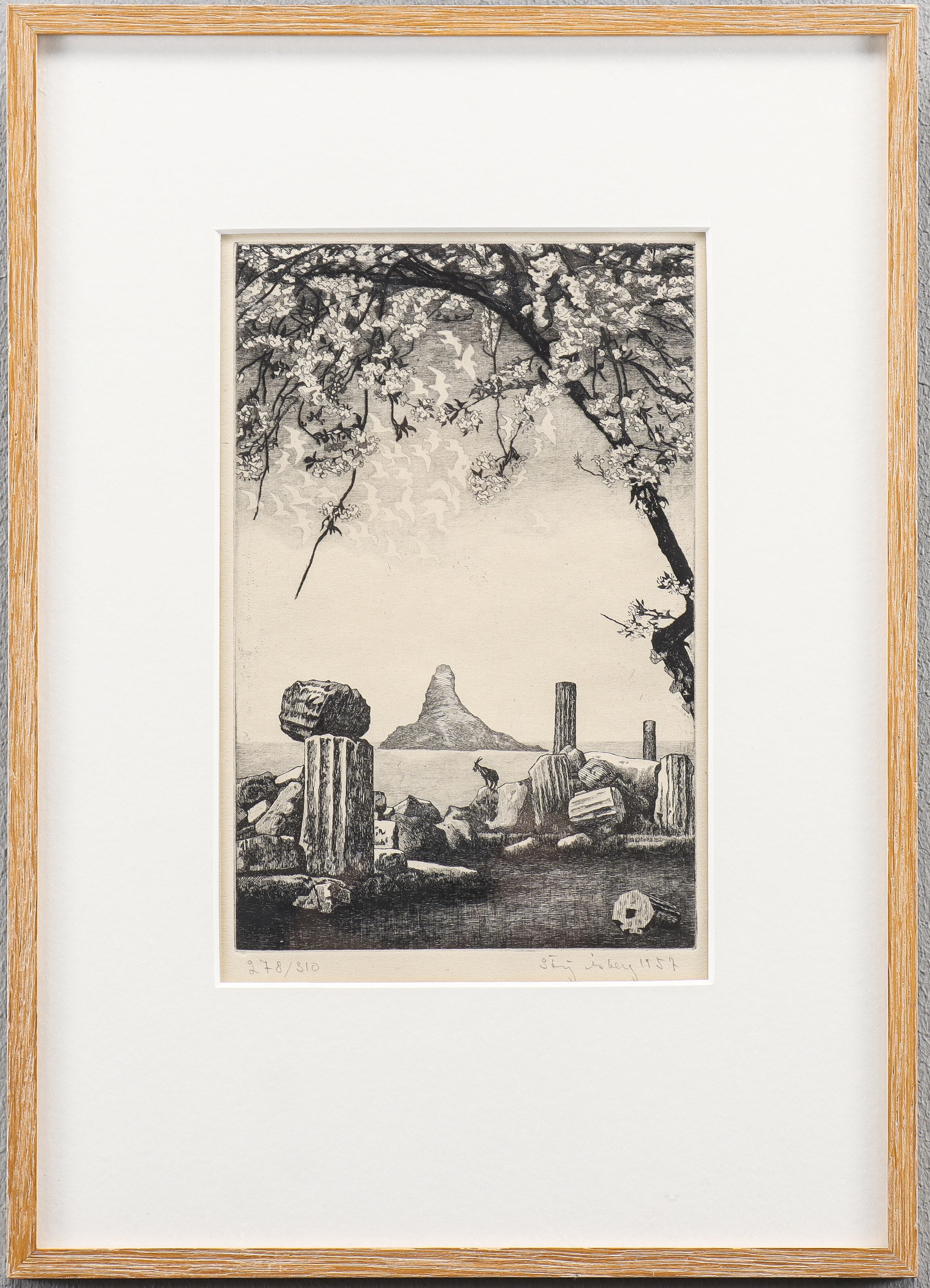 4490459. STIG ÅSBERG. Surreale Landschaft mit Ziege.
