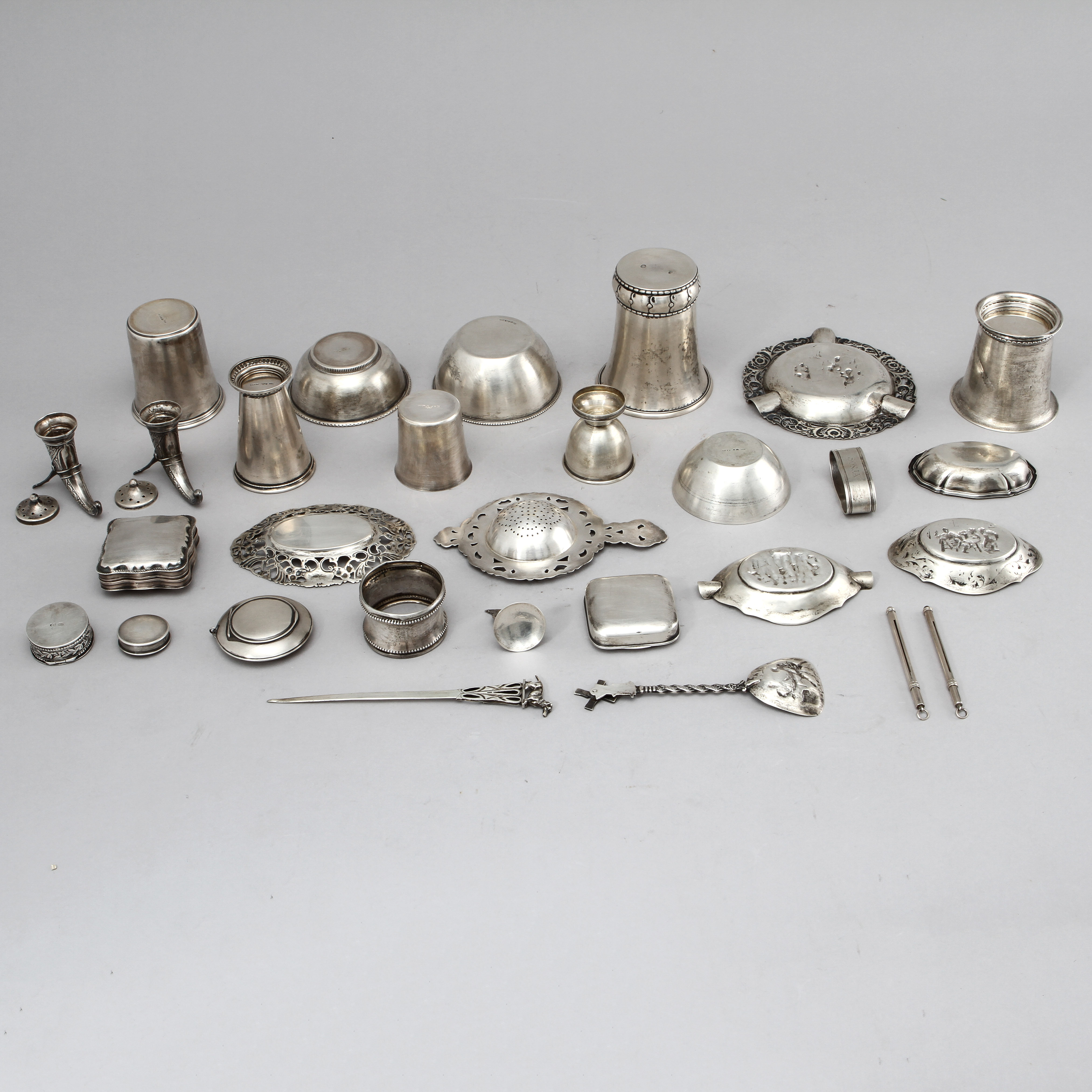 449411. SILBEROBJEKTE, 29 Stk. Gewicht ca. 790 Gramm.