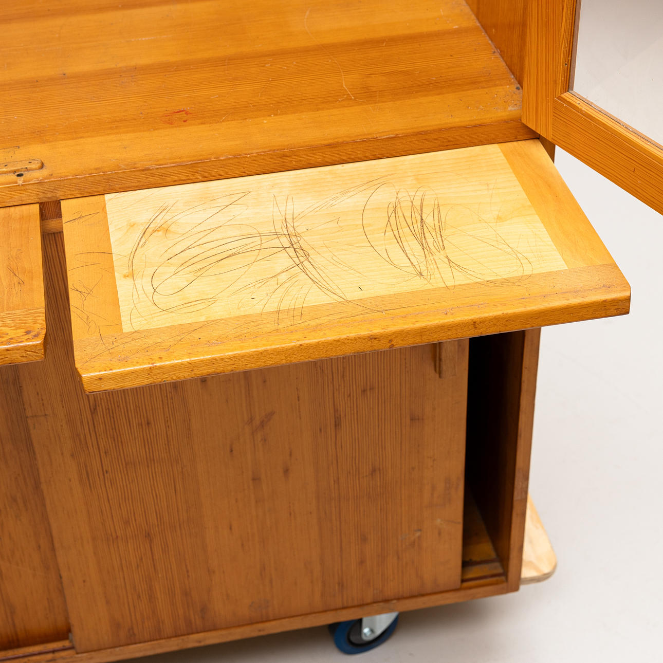 4523939. Eine hölzerne „Schulvitrine“ aus dem 20. Jahrhundert.