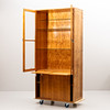 Oberseite mit einem verglasten Paar Türen und Heckregalen. Unten mit einem Paar Schiebetüren mit Heckablagen. Zwei einziehbare Reliefscheiben. Breite ca. 106, Tiefe 60. Höhe 225 cm.