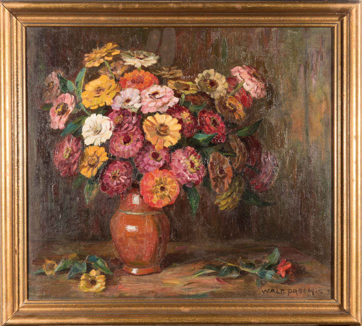 453551. WALTER PASCH. STILLEBEN MIT ZINNIEN.