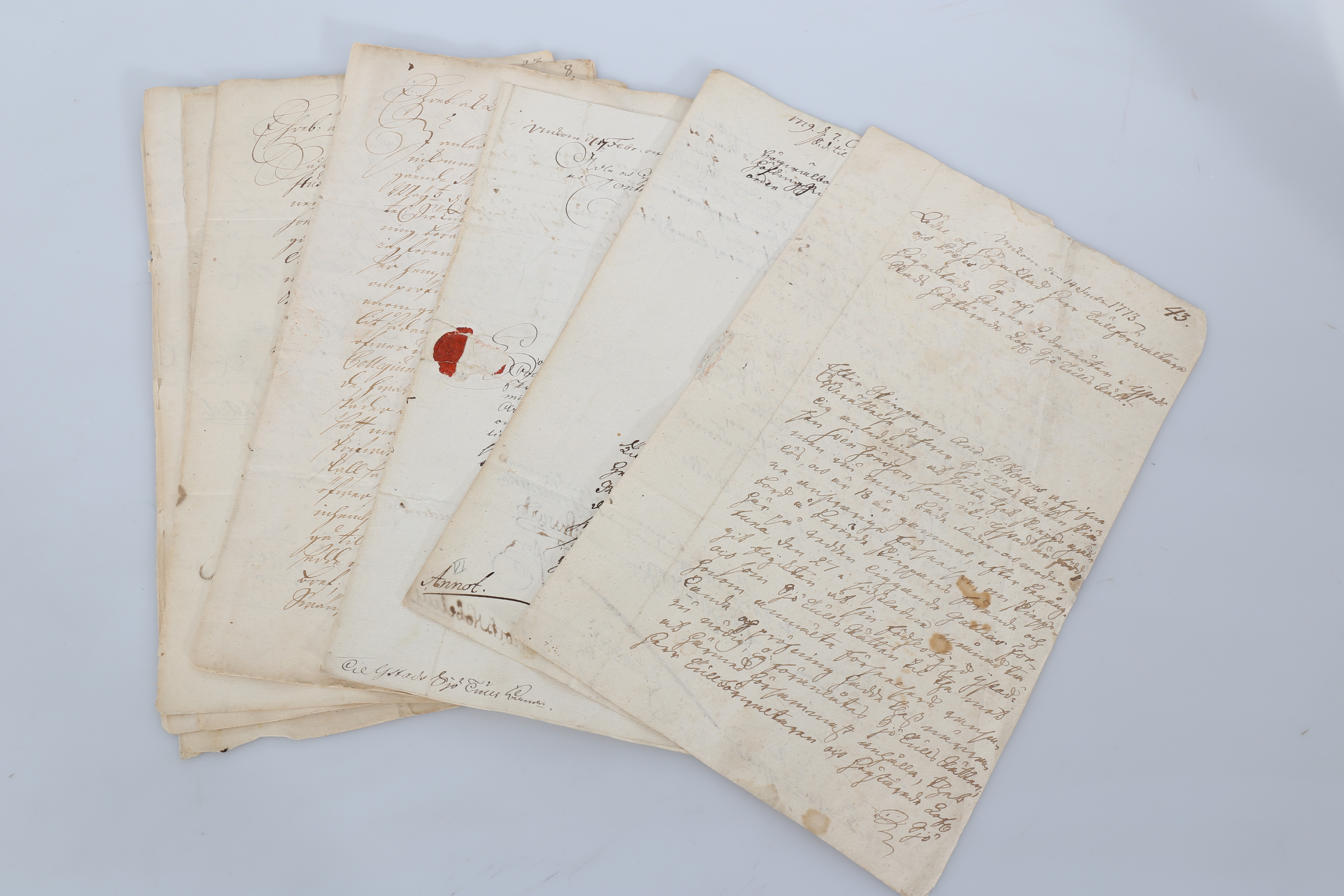 453911. DOKUMENTE, 8 Stück, 1724-1779.