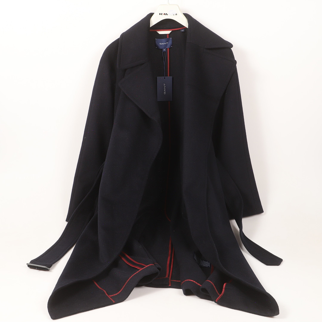 4548560. MANTEL, dunkelblau mit Gürtel, Wollmischung, GANT.