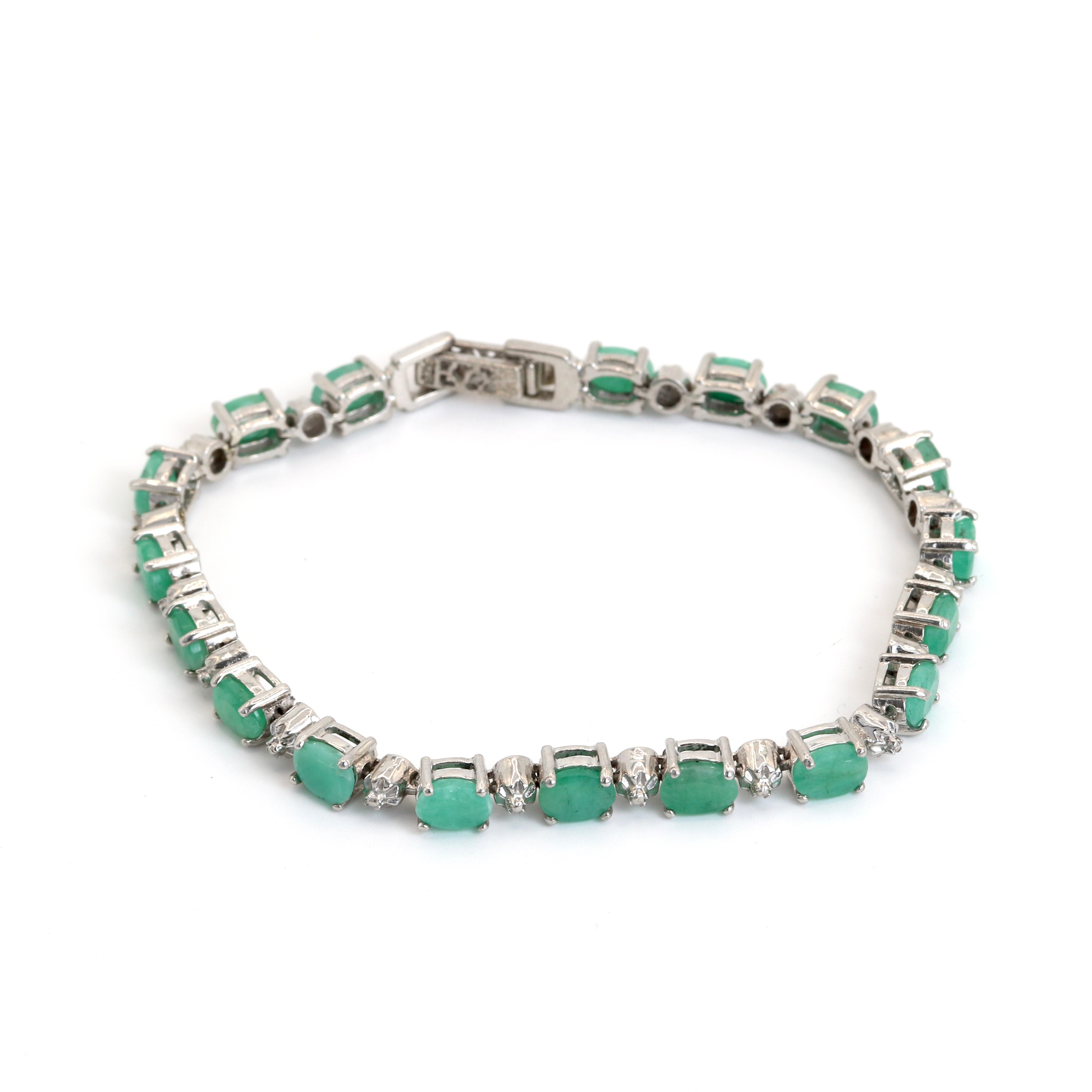 4551080. ARMBAND-SET AUS STERLINGSILBER MIT SMARAGDEN.